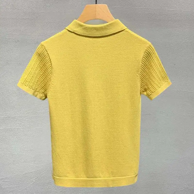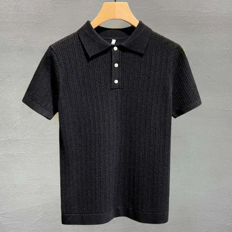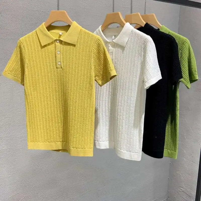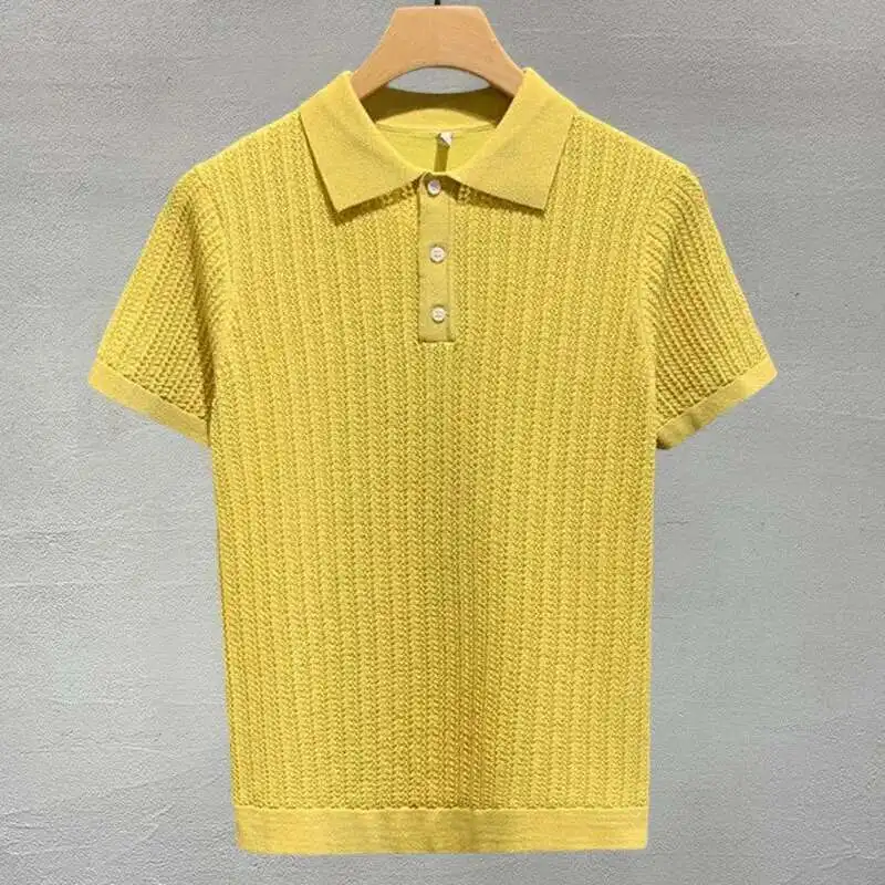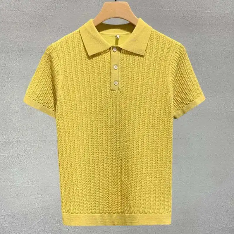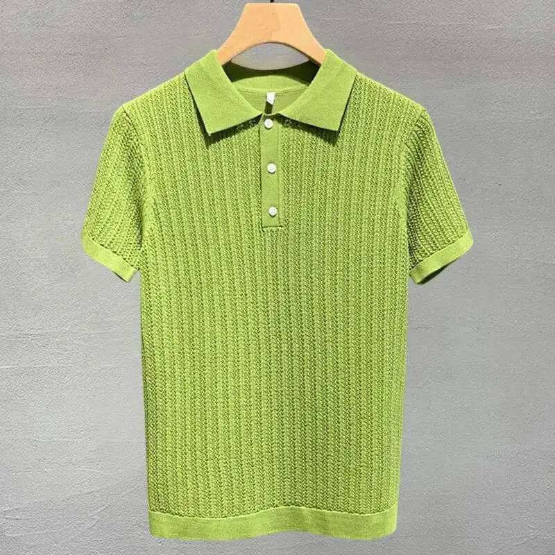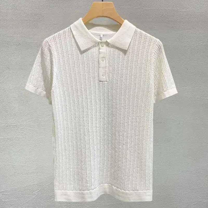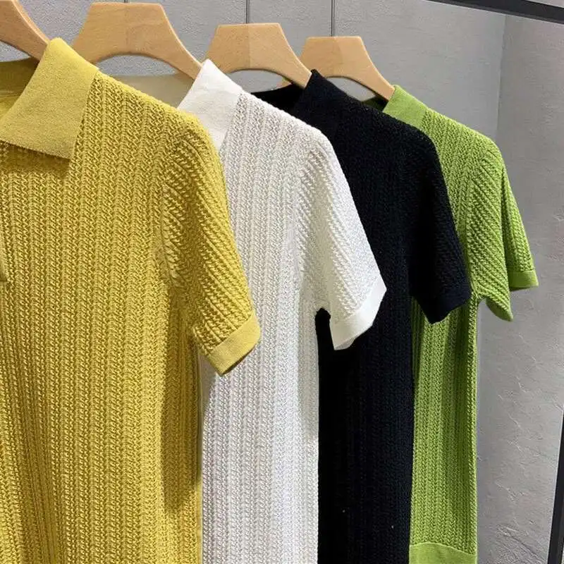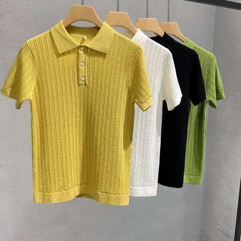 2022 Fall Men Short Sleeve Polo Hollow Solid Color Lapel Top Korean Slim Knit Men Polo High Quality Tee Shirt Camisa Hombre