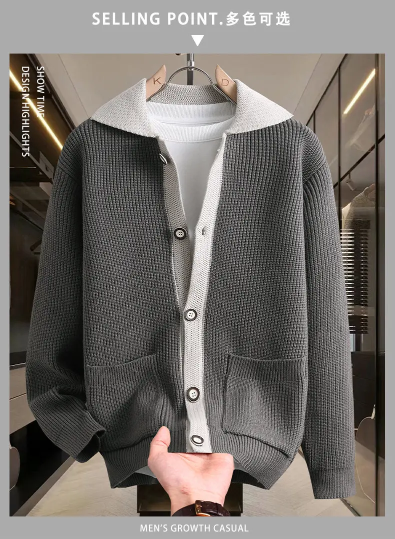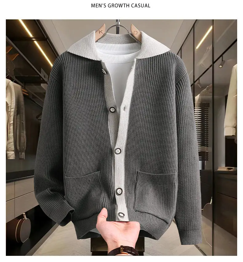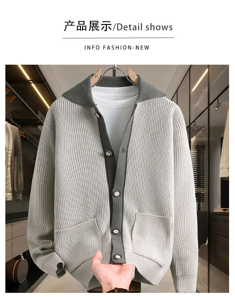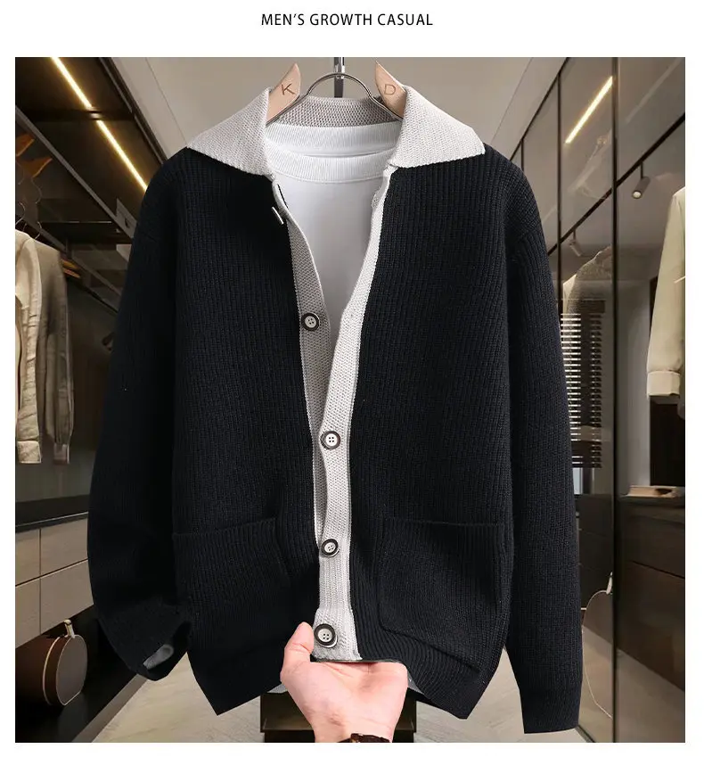 2025 Fall Black Contrast Patchwork Printing Cardigan Men Sweter New Korean Sweater Coat Designer Knit Cardigan Jacket Sweater