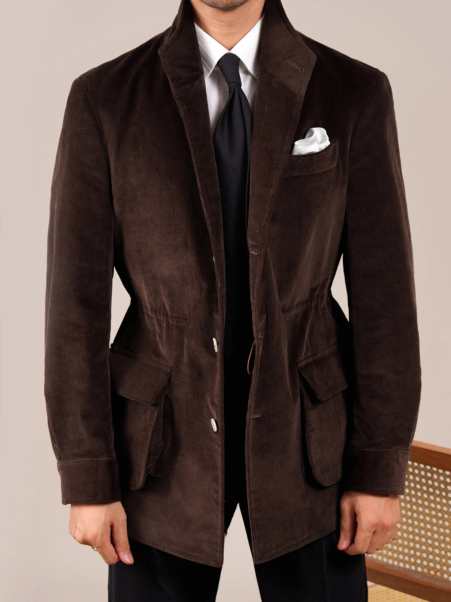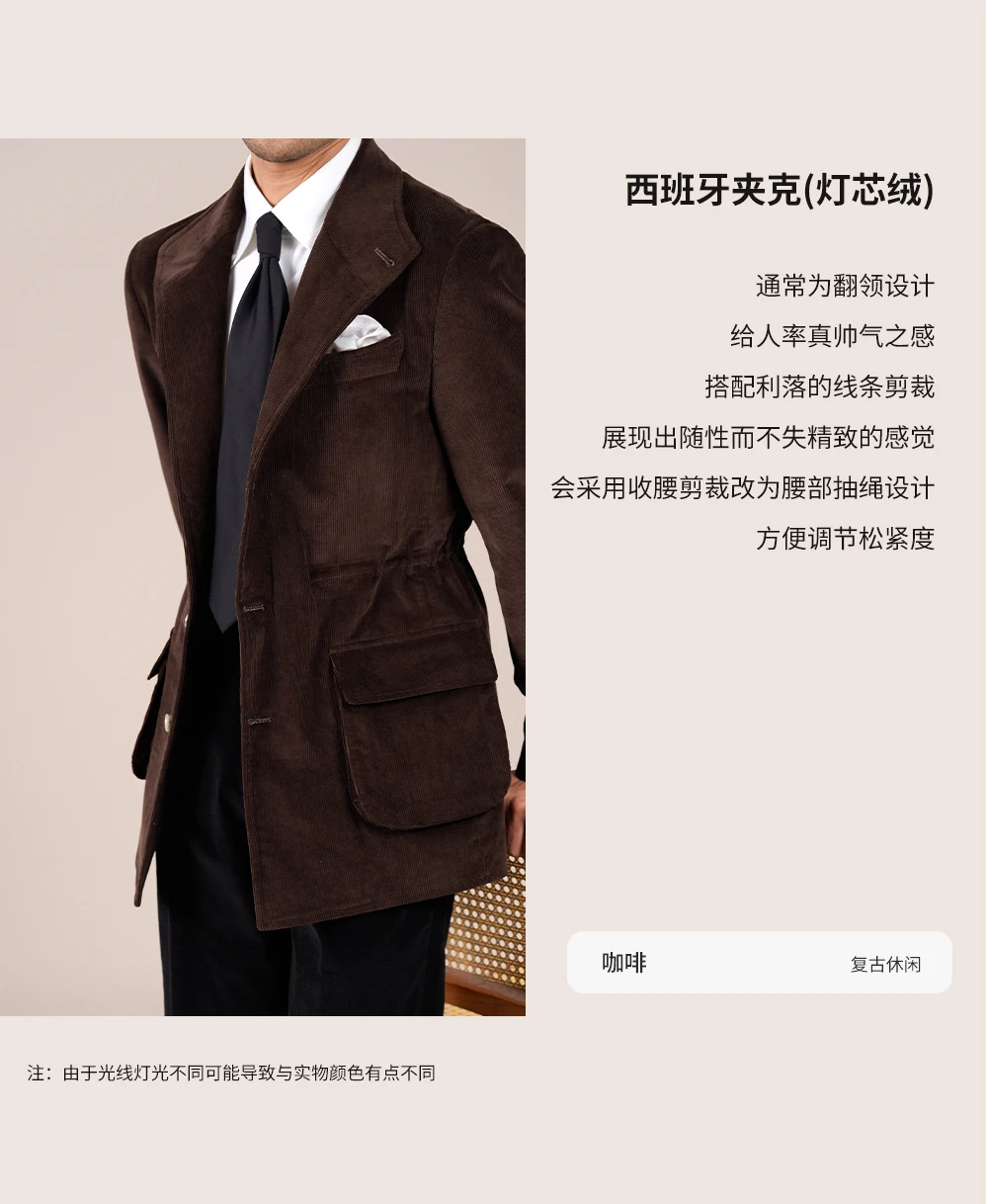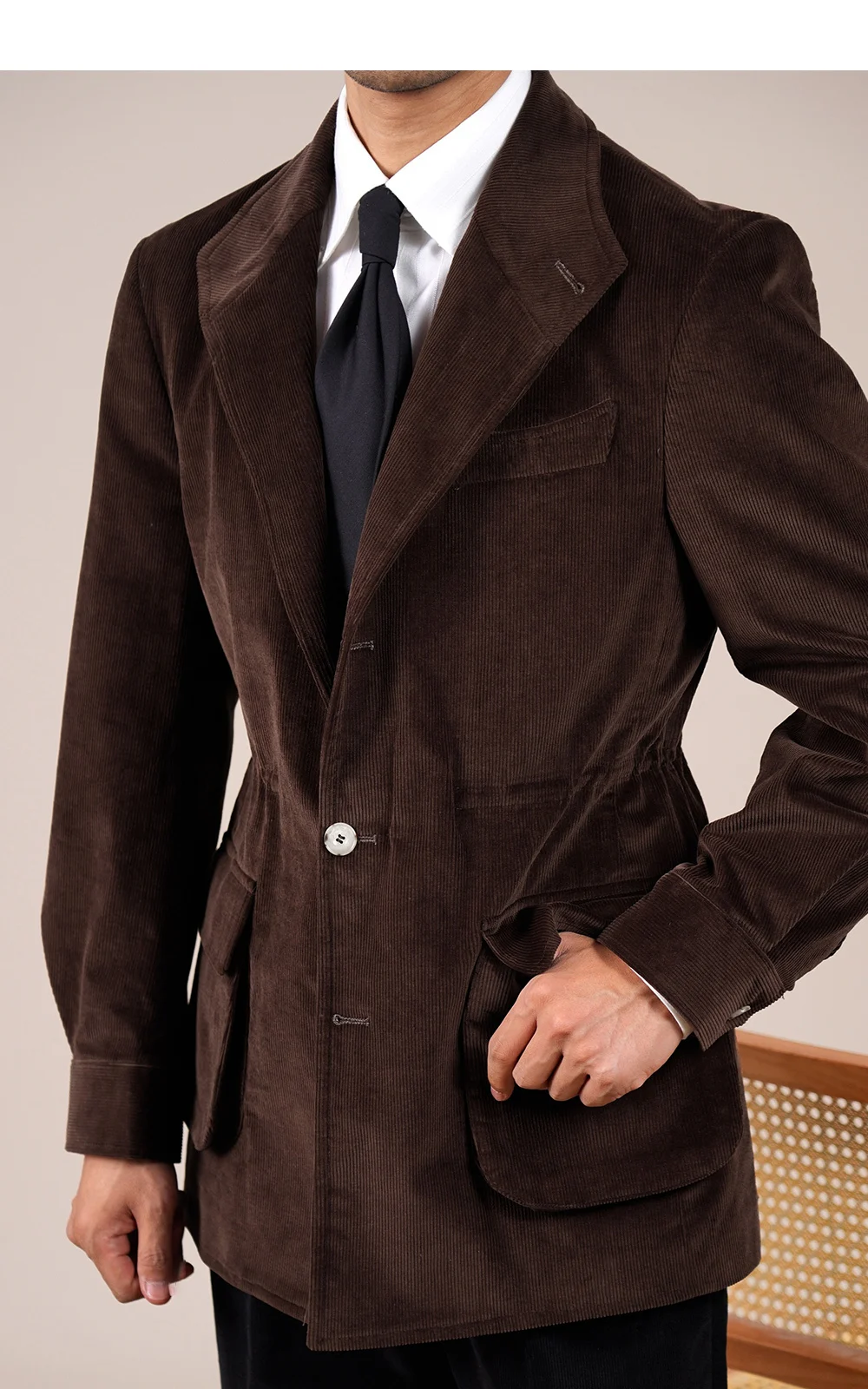 2025 Hunting Jacket Men Cotton Blend Corduroy Gentleman Suit Collar Commuter Casual Coat Vintage Bomber Jacket Jaqueta Masculina