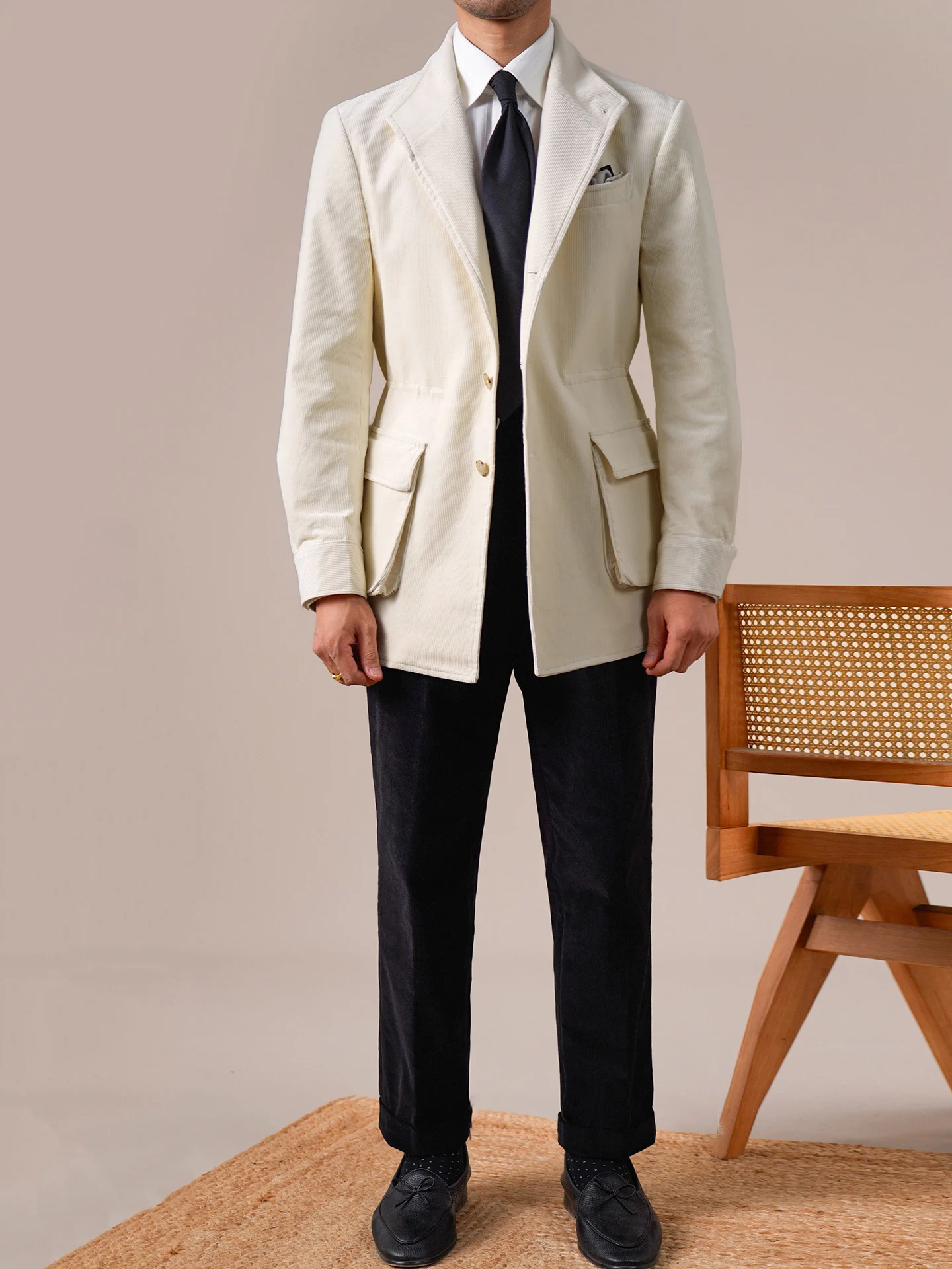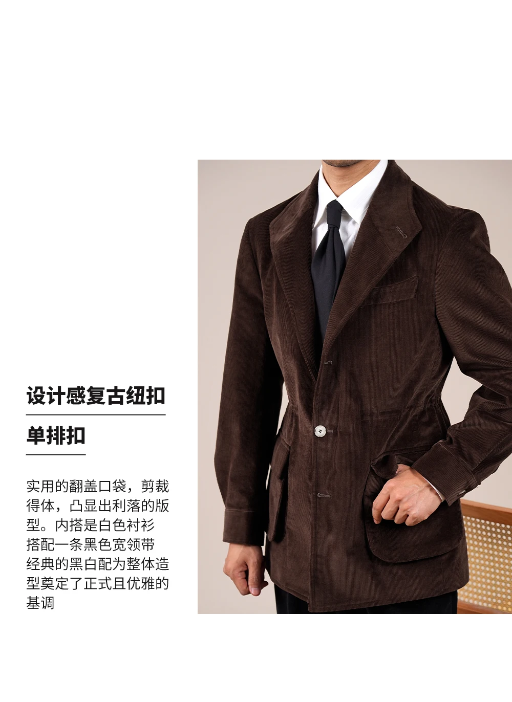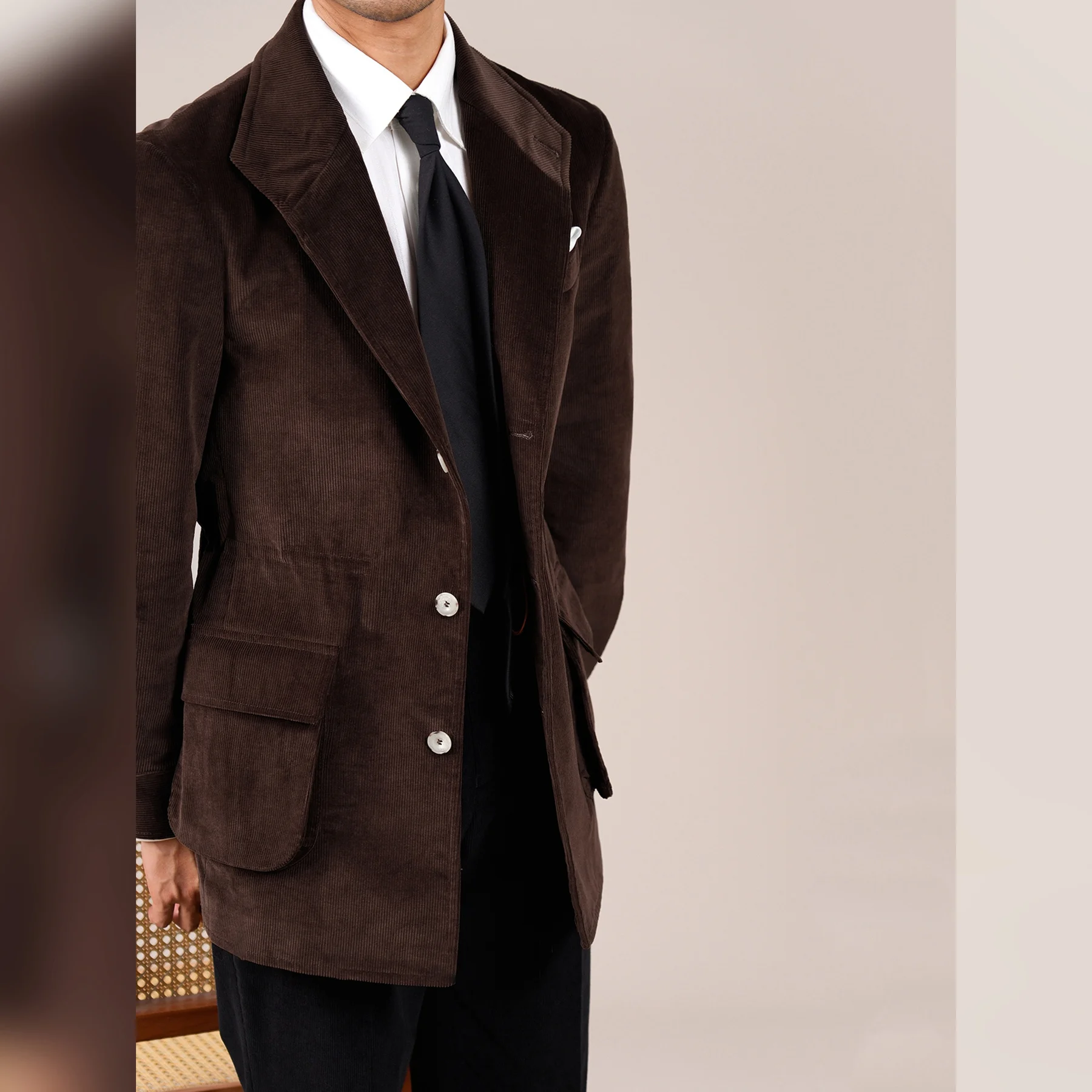 2025 Hunting Jacket Men Cotton Blend Corduroy Gentleman Suit Collar Commuter Casual Coat Vintage Bomber Jacket Jaqueta Masculina