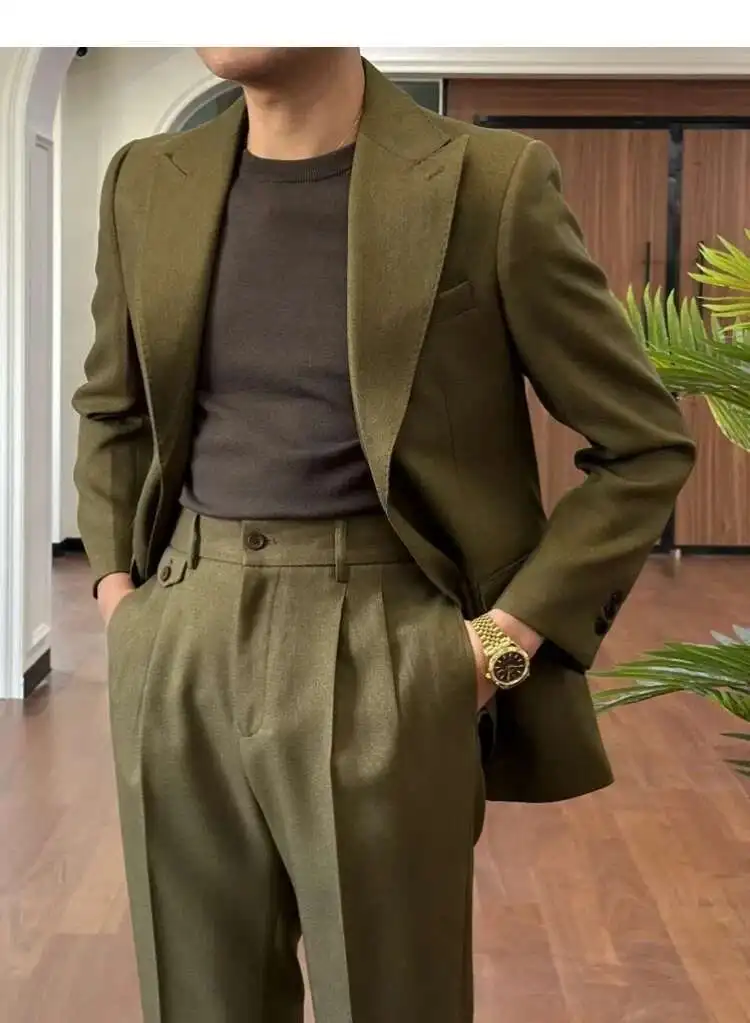 2025 Top Quality Business Dress Suit Wedding Suit For Men Versatile Casual Office Party Prom Costume Homme Green Men Tuxedo Suit