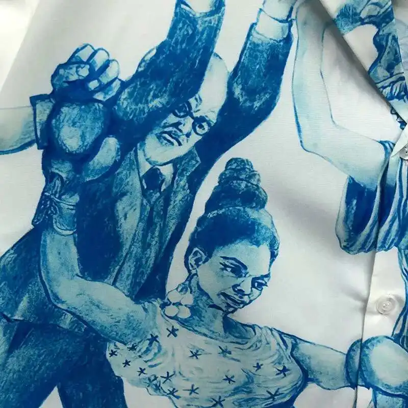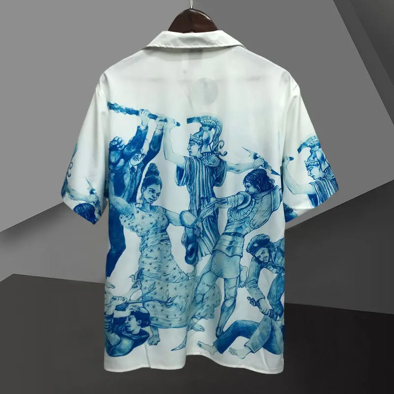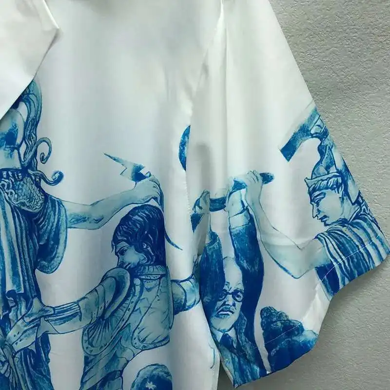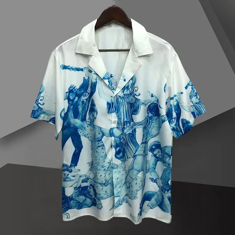 Abstract Art Portrait Pattern Print Shirt Short Sleeve Casual Men Shirt Streetwear Summer Camisa Masculina Shirt Moda Hombre