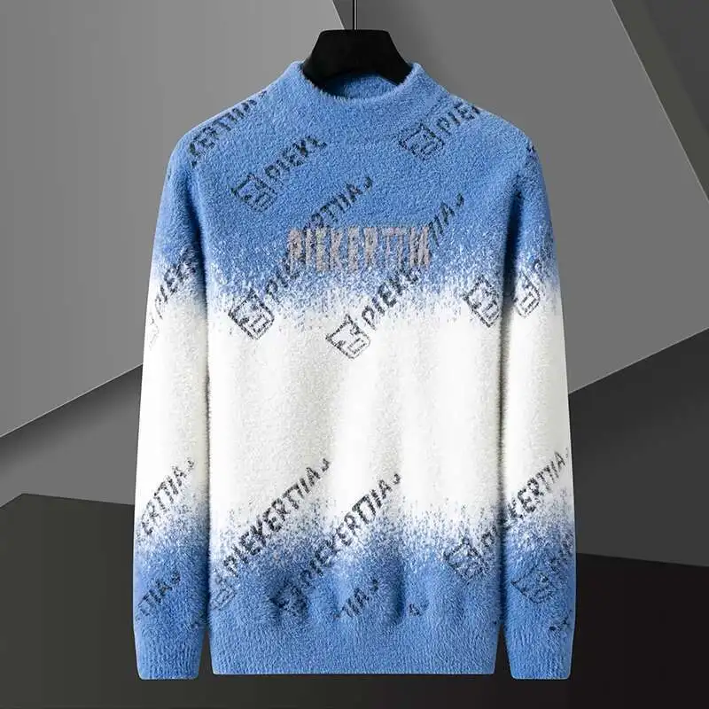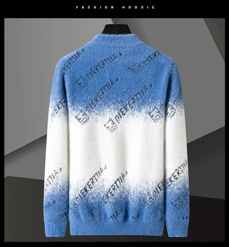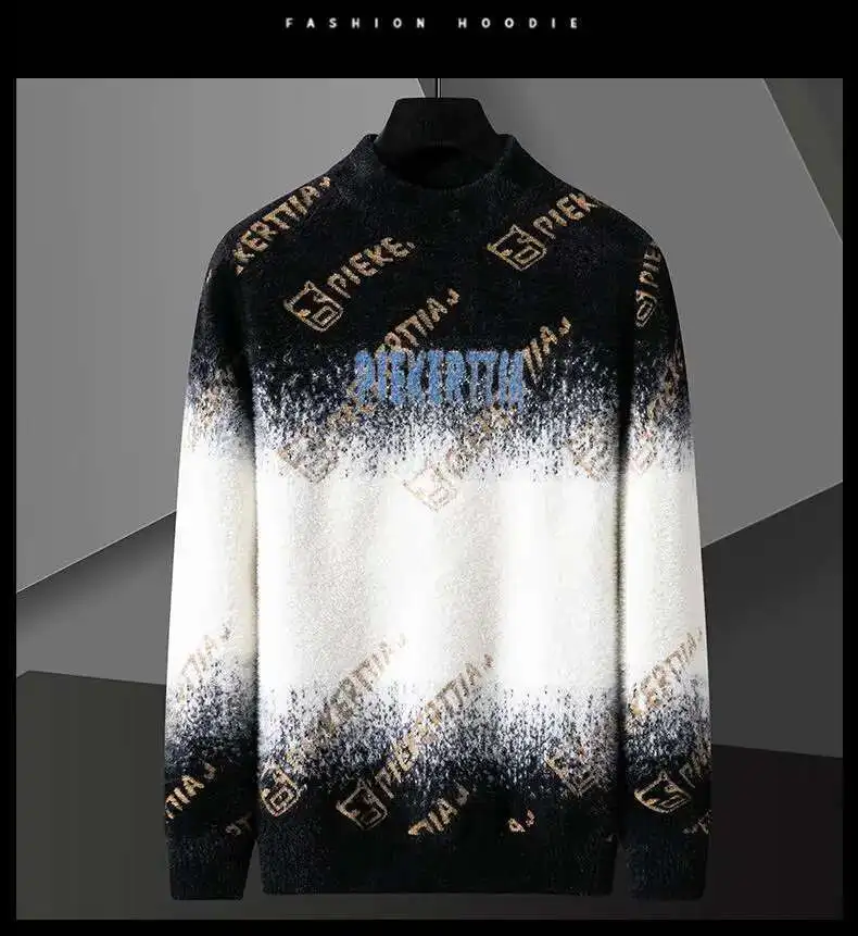 Alphabet Gradient Sweater Warm Sweater Half Turtleneck Sweater Homme Slim Fit Sweaters Tops Knitted Men’s Jumper Pull Homme