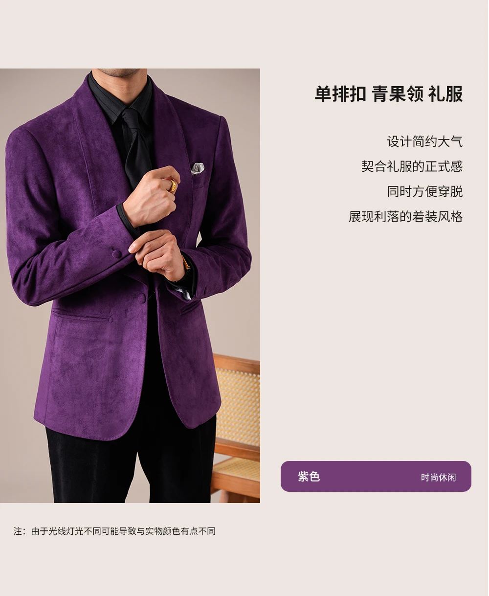 Autumn Big Collar Suit Jacket Men Single Breasted Business Mens Blazer Vintage Gentleman One Button Wedding Groom Formal Suit