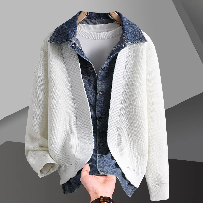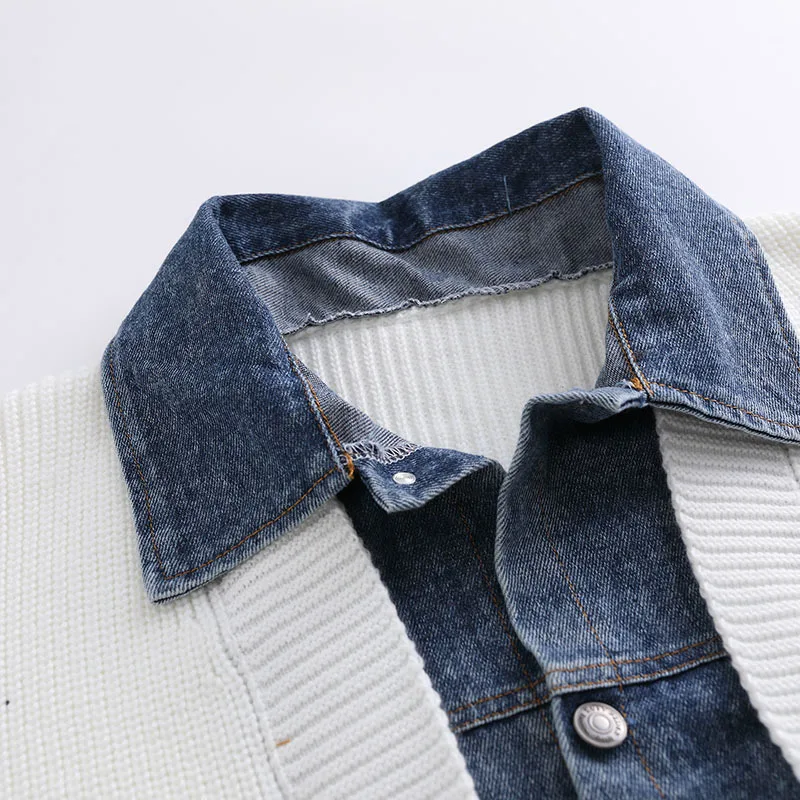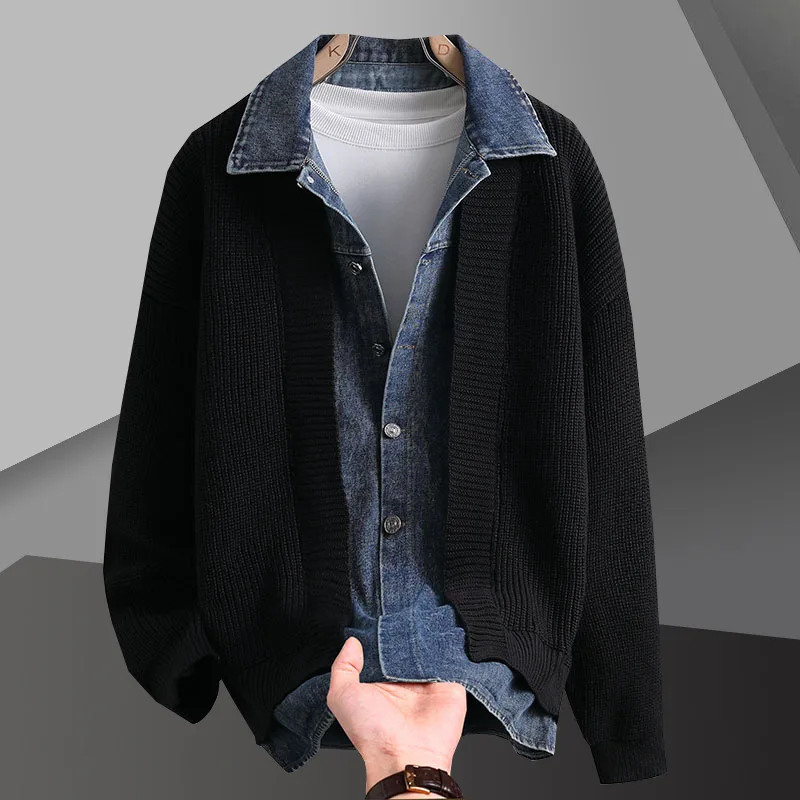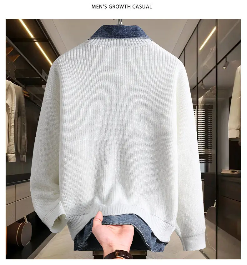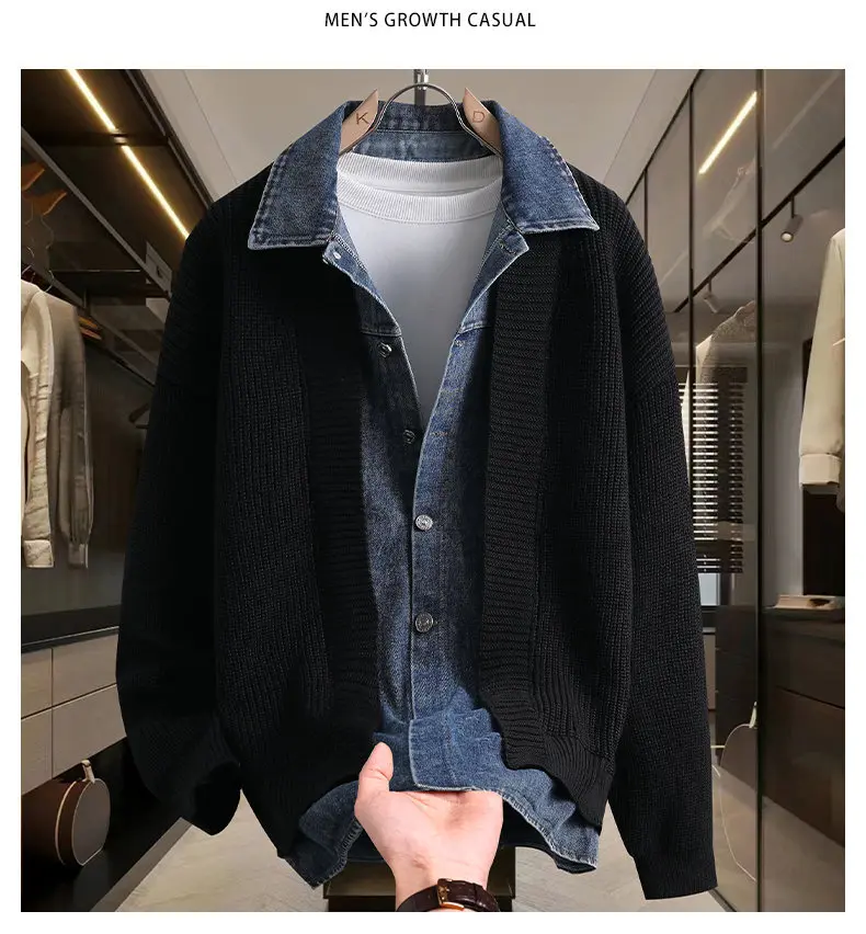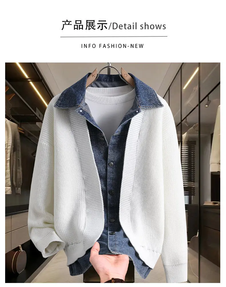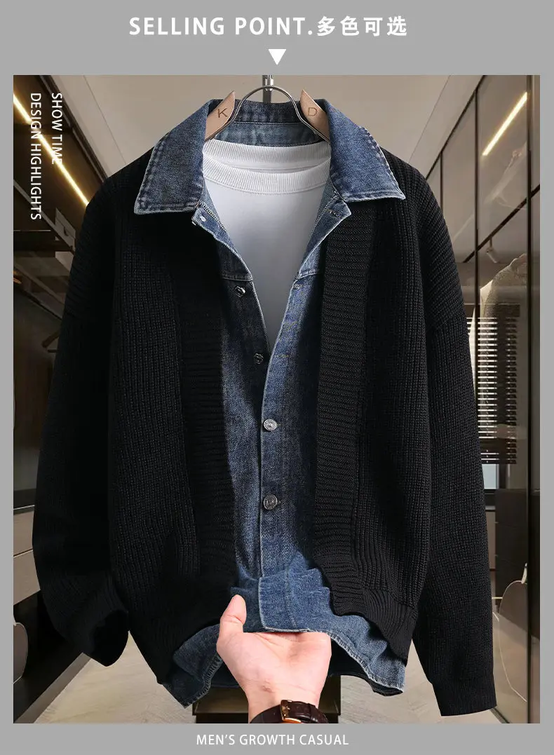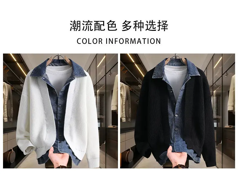 Cowboy Decoration Knitting Cardigan Man Long Sleeve Sweater Cardigan Male Garment Coat Sweater Lapel Color Contrast Knitwears