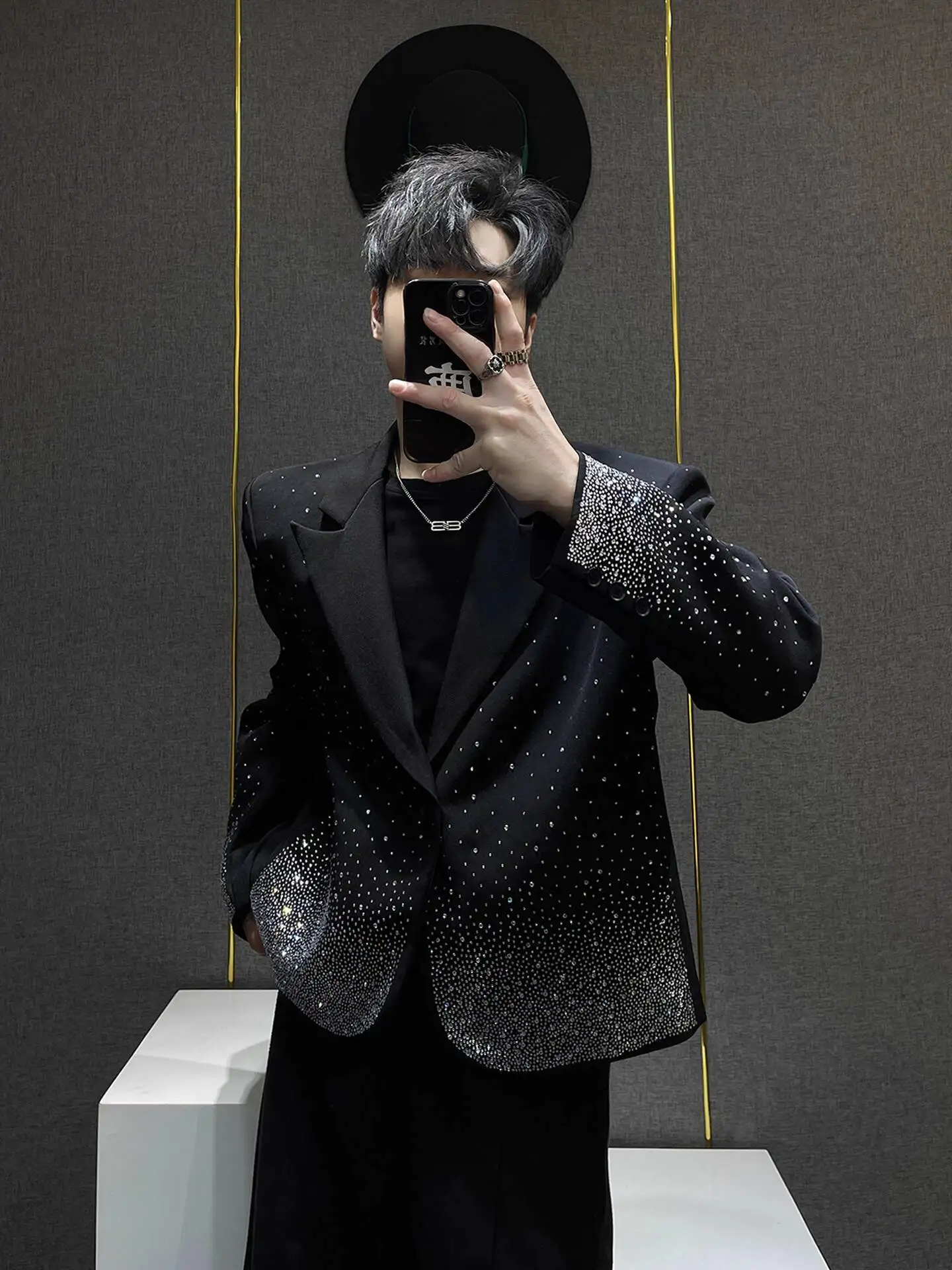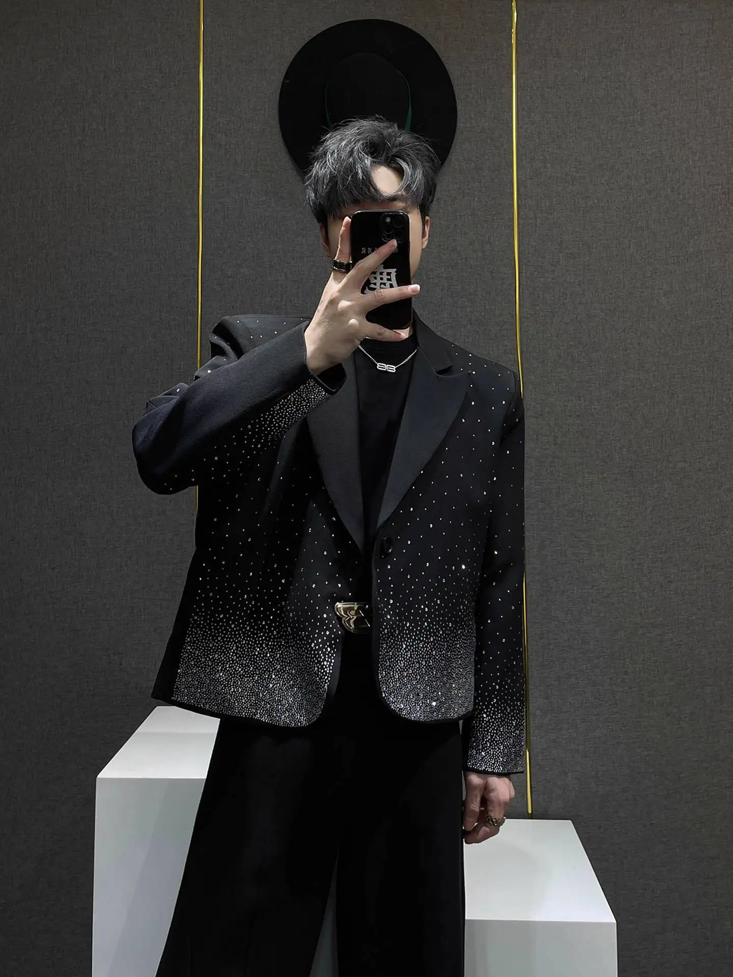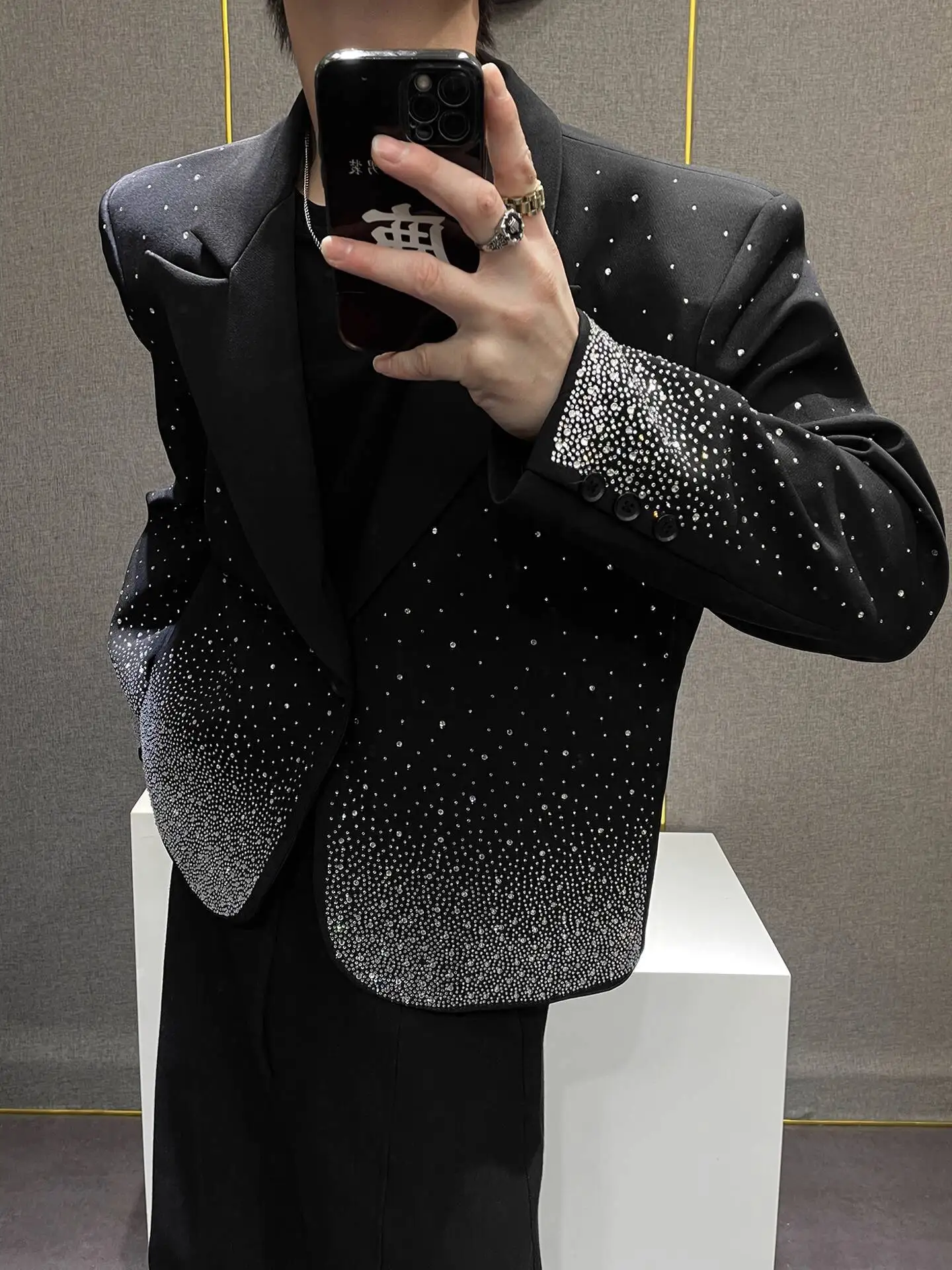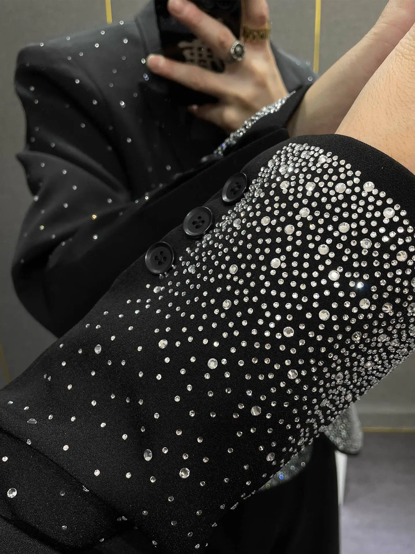 European Style Heavy Industry Shining Suit Coat Jacket Club Party Blazer Men Stage Suit High Quality Luxury Punk Blazer Jacket