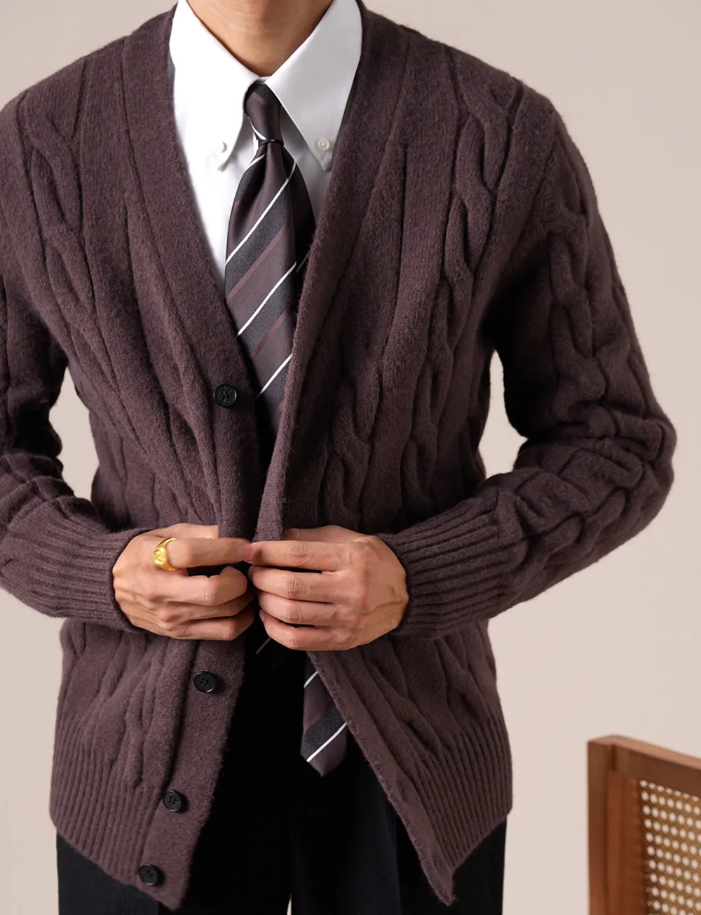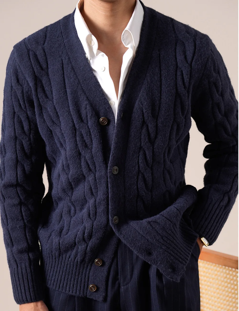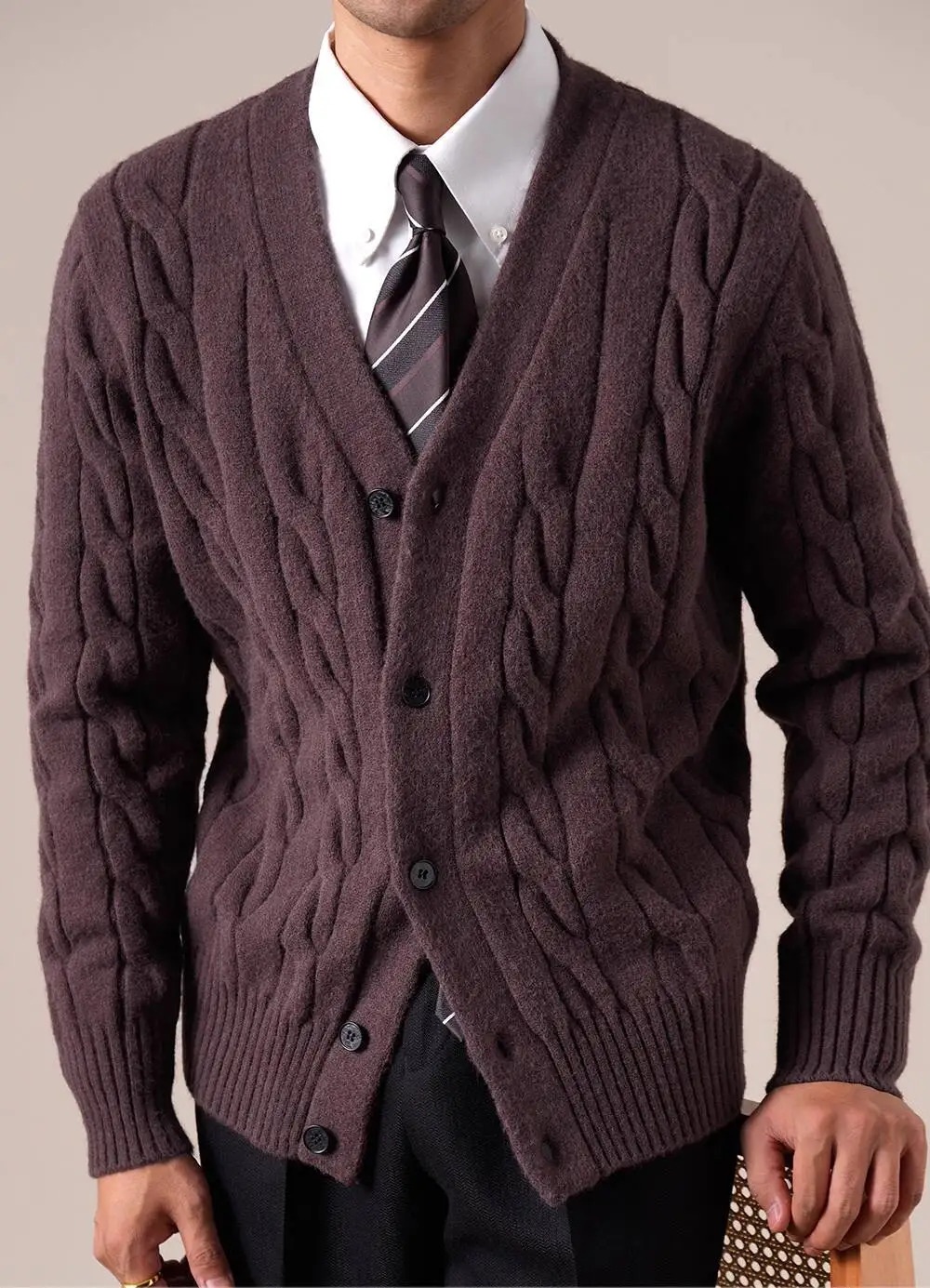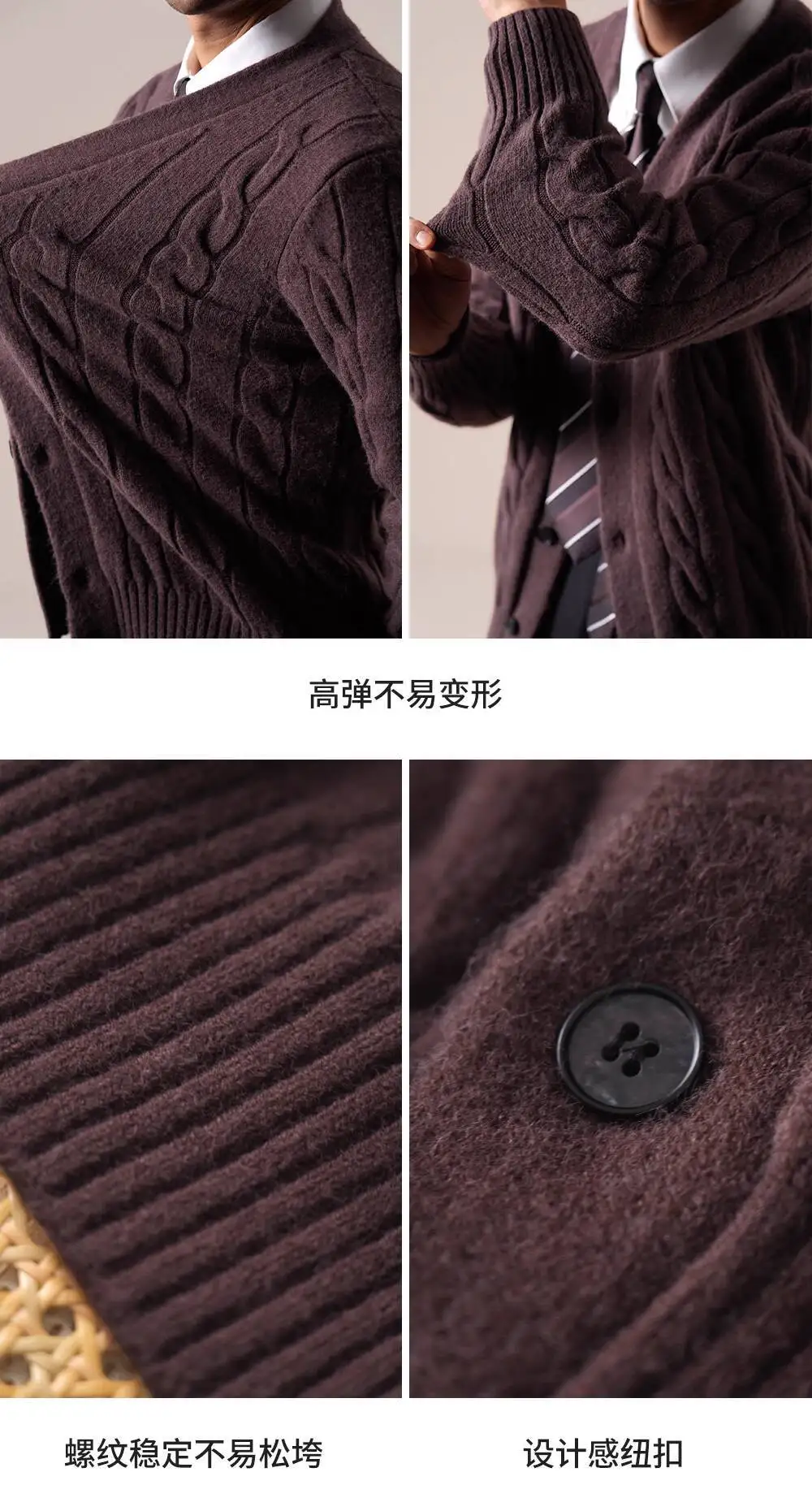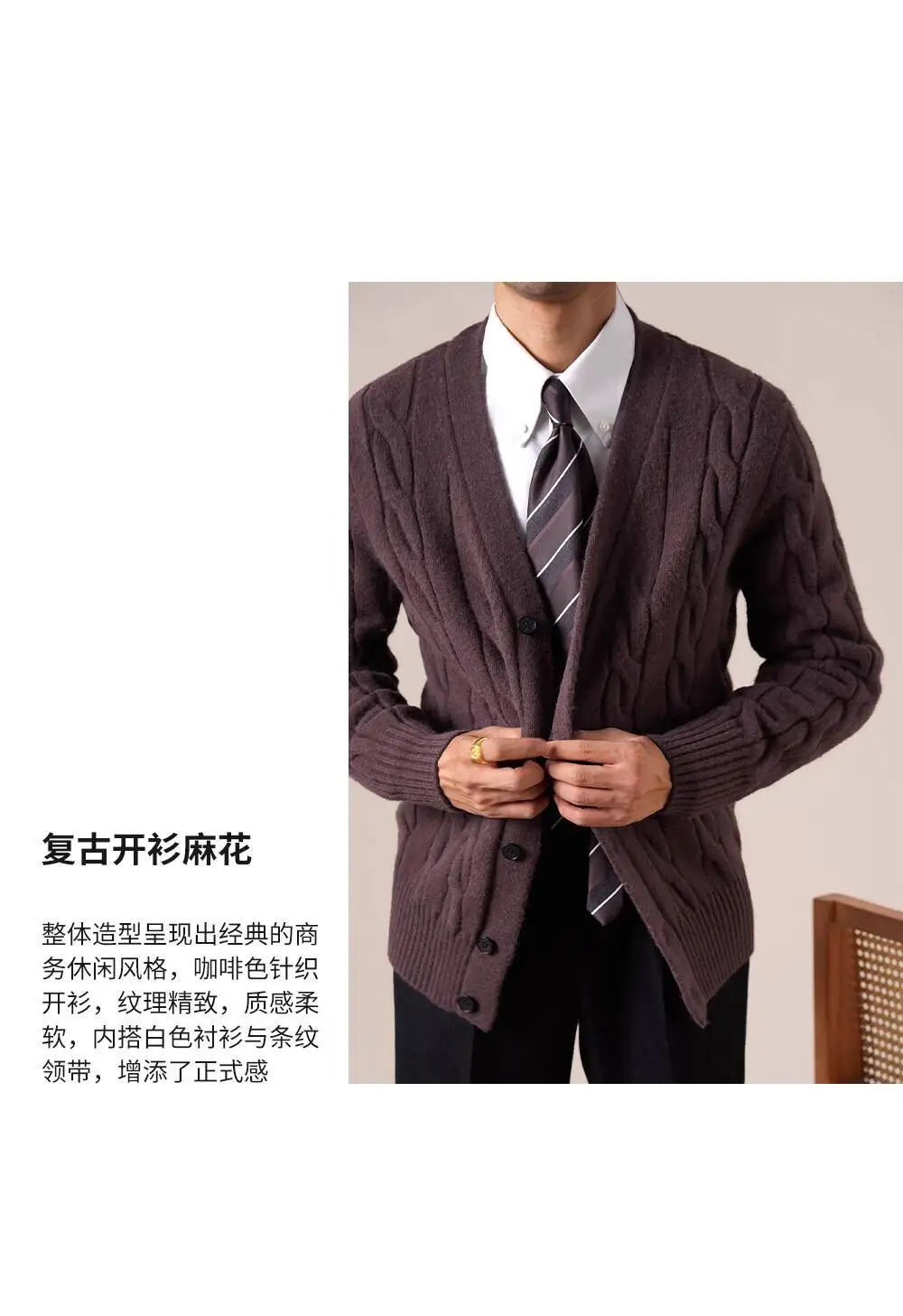 Fall Heavy Knit Cardigan Men With Cable Knit Design Anti-Pilling Winter Gentleman Sweater Jacket Abrigo Hombre Sweter De Hombre