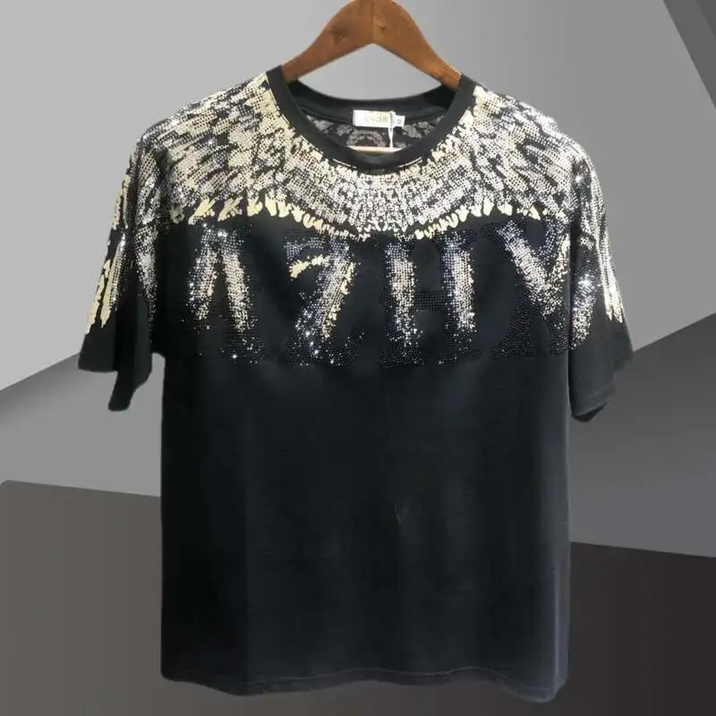 Fashion Brand Short Sleeve T-shirt For Men 2025 Summer Letter Hot Drilling Man Tshirt Top Social Club Outfits Tee Shirt Homme