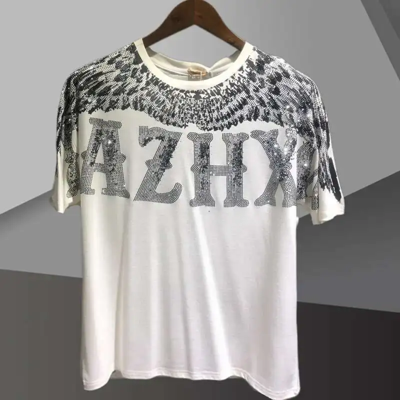 Be the first to review “Fashion Brand Short Sleeve T-shirt For Men 2025 Summer Letter Hot Drilling Man Tshirt Top Social Club Outfits Tee Shirt Homme”