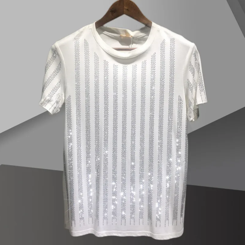 Fashion Short-sleeved Tshirt Brand Hot Diamond Stripe T-shirt Mens Streetwear Casual O-Neck Tee Shirt Homme Clothes Man Diamond