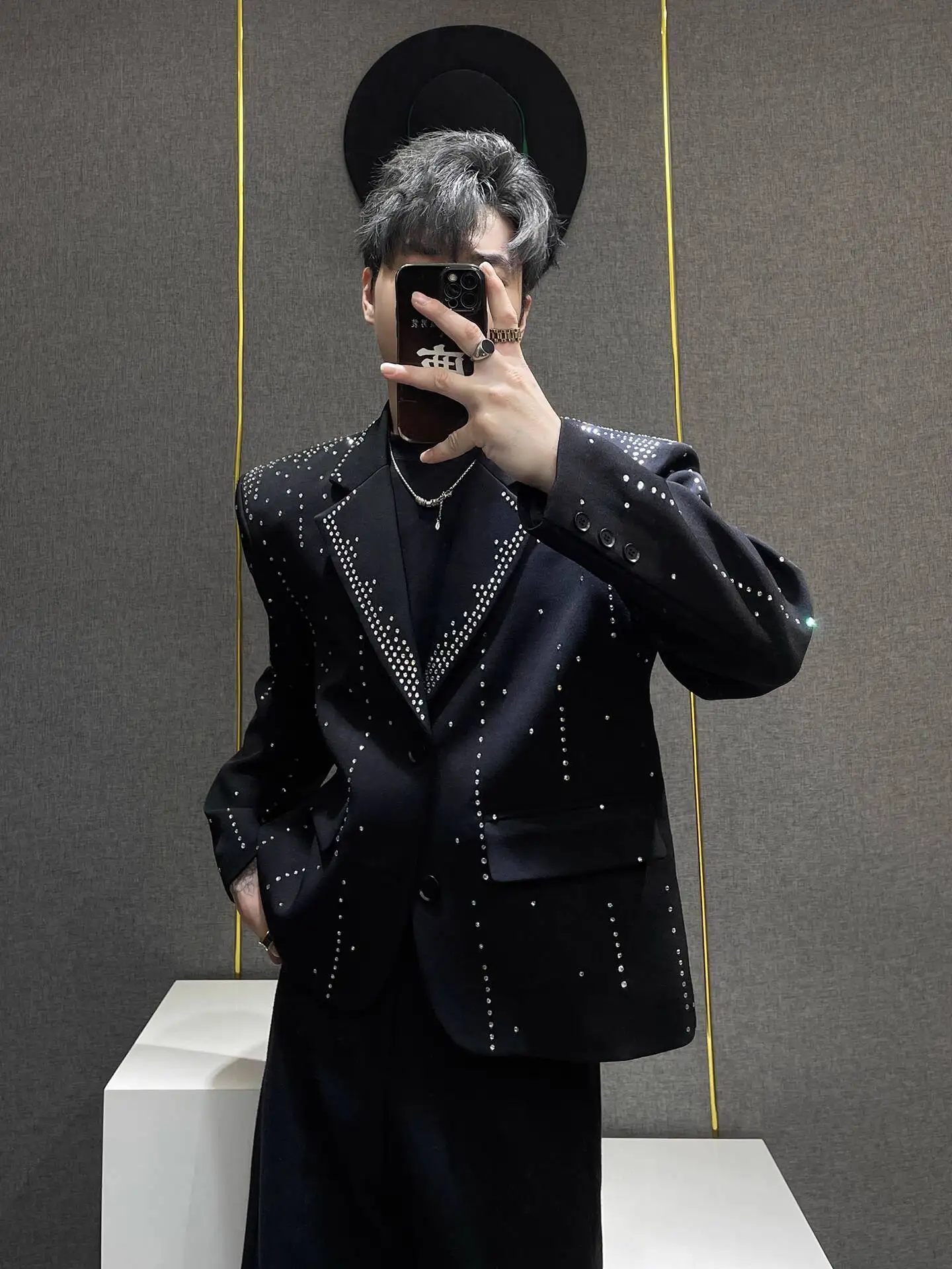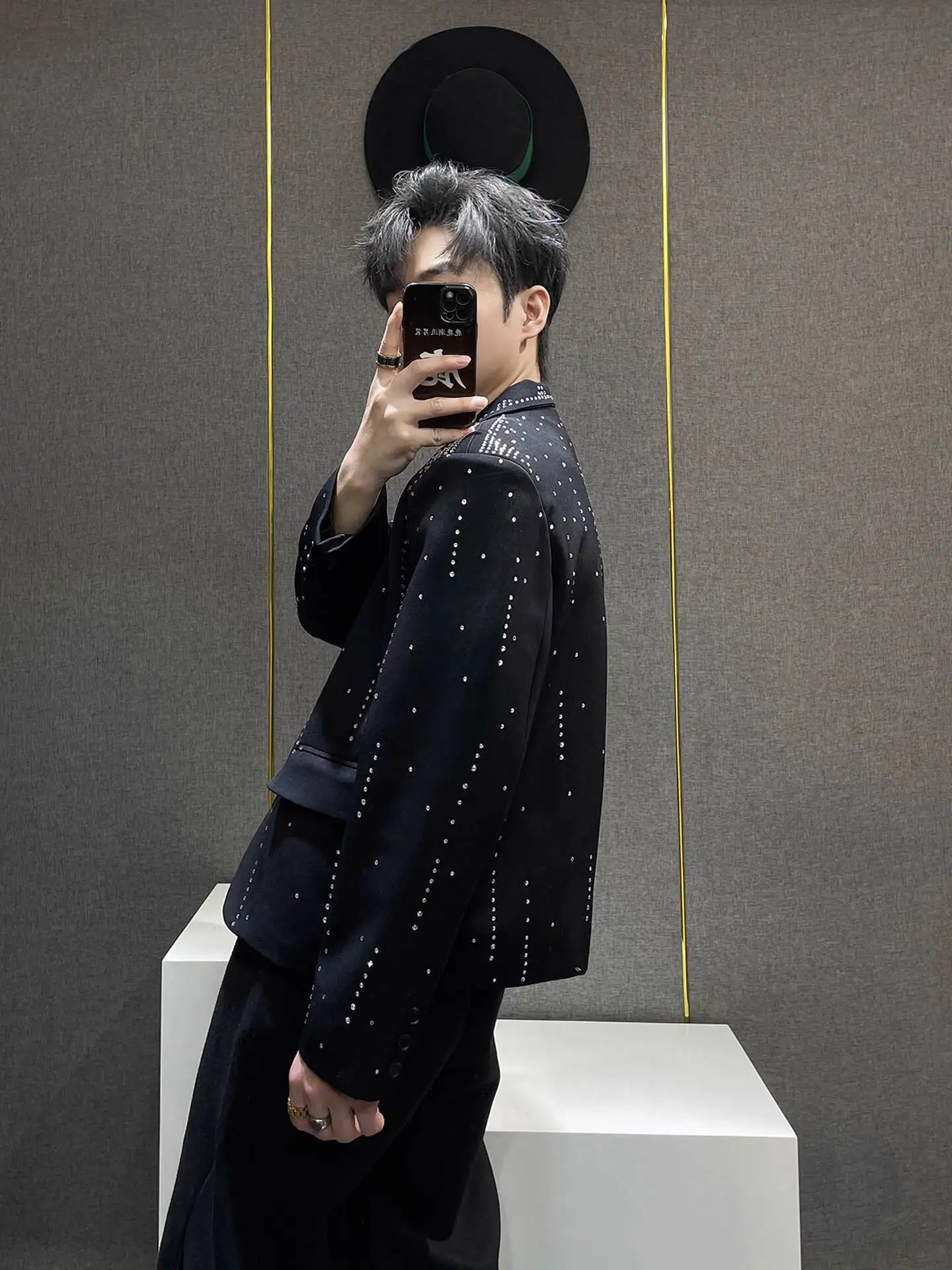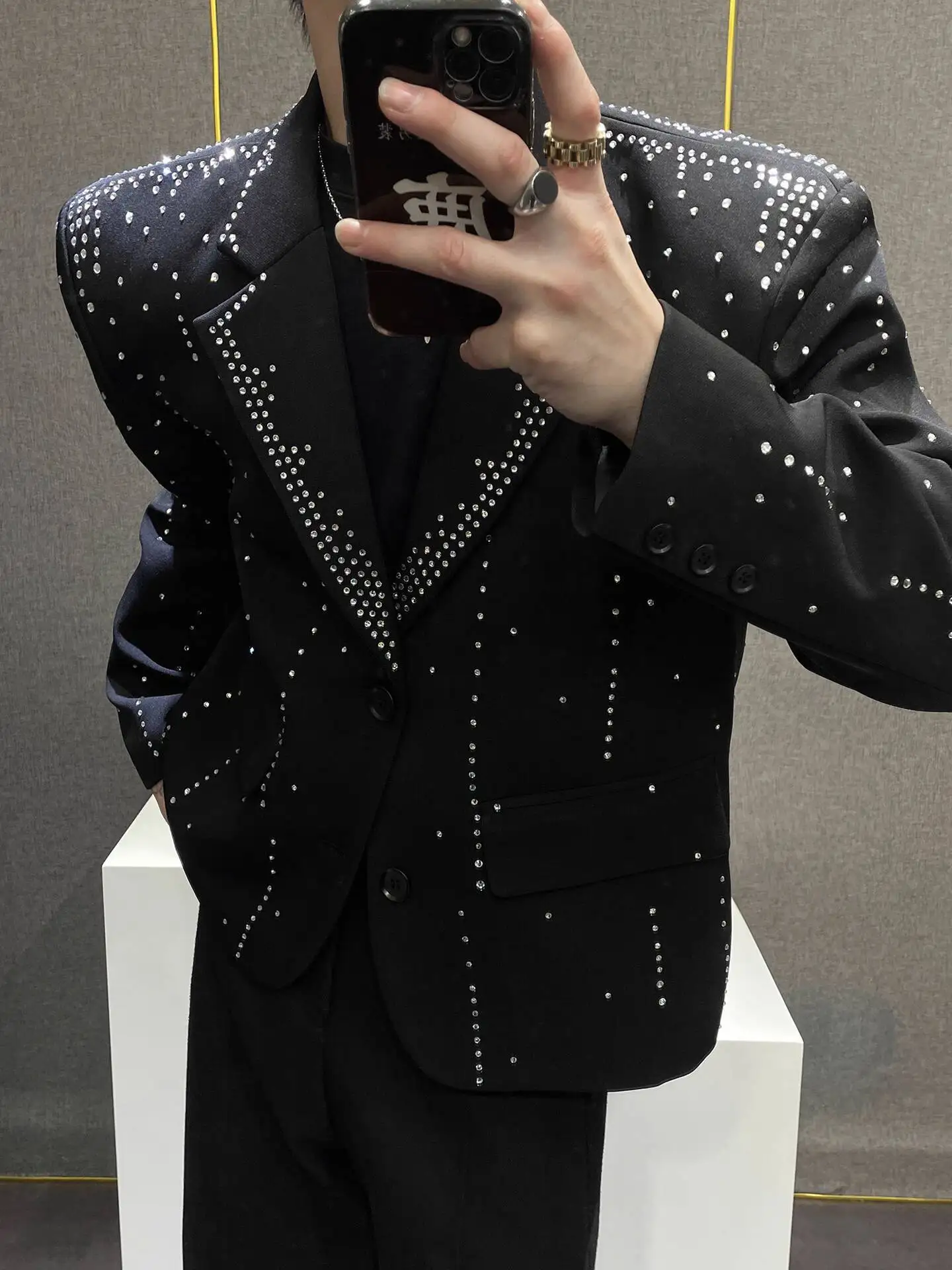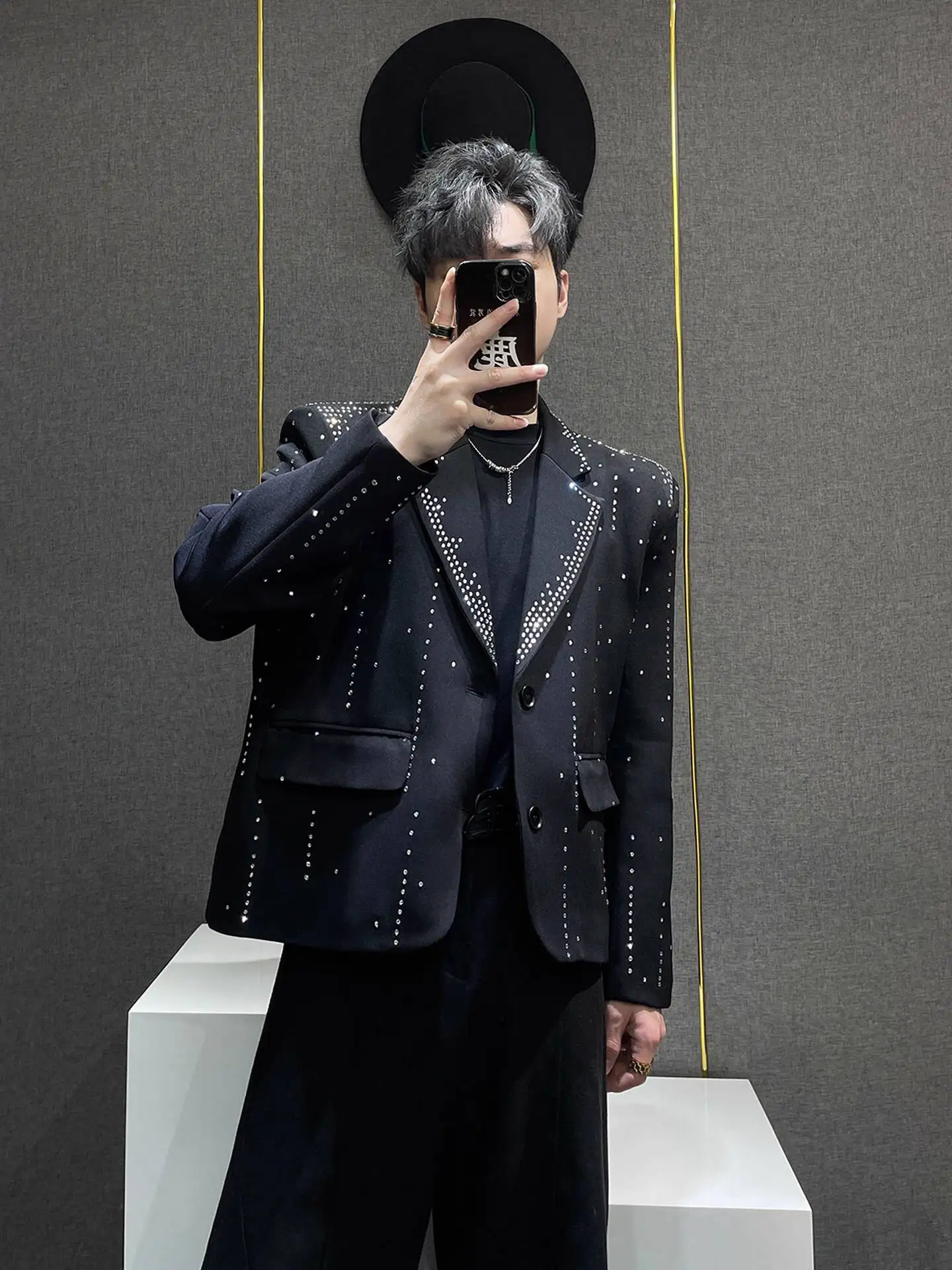 Hot drilling Shiny Jacket Club Party Blazer Men Stage Suit Jacket Men Blazer Homme Luxury Korean Punk Jacket Blazer Masculino