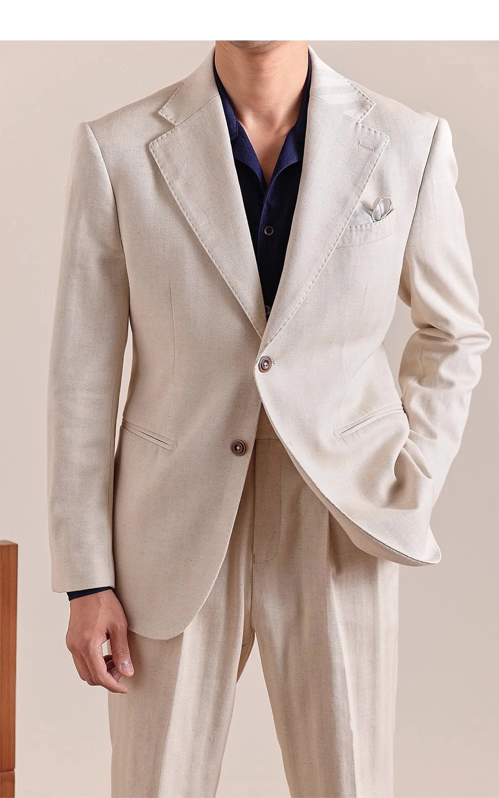 Italian Style Suit For Men Business And Leisure Summer Breathable Ternos Masculino Smoking Homme Mariage Fashion Groom Men Suit