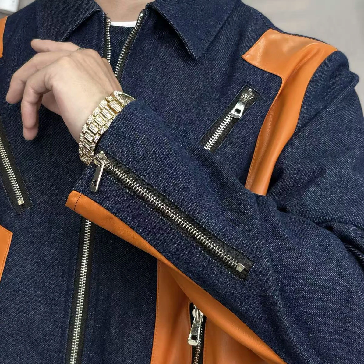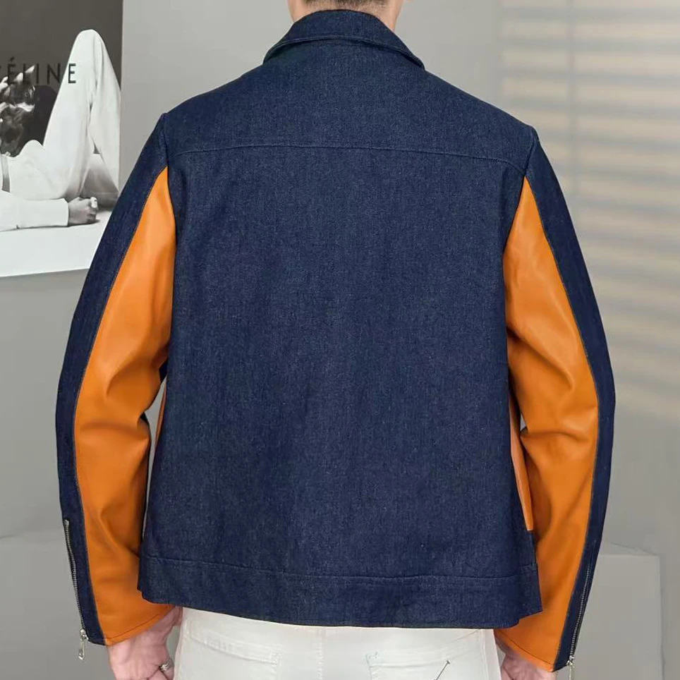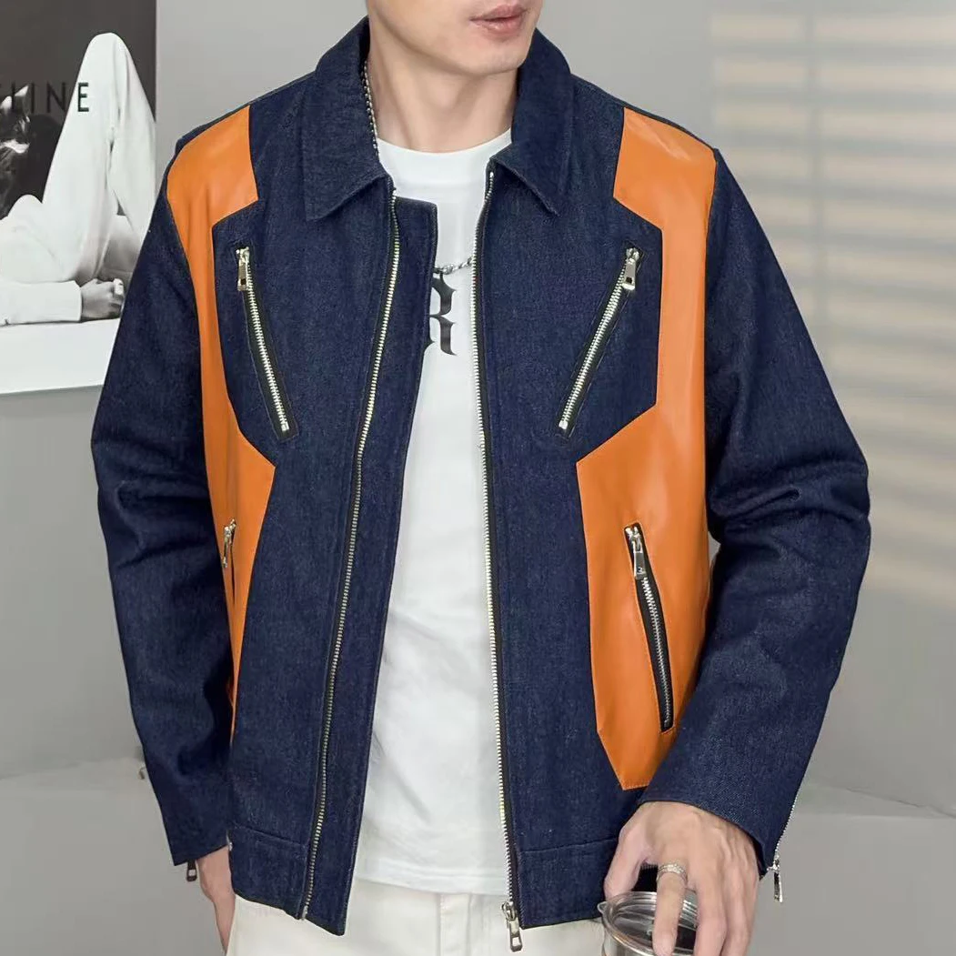 Jaqueta Masculino Couro Mens Contrast Stitching Leather Jacket Luxury Punk Club Outfit Jacket Jaqueta Bomber Motorcycle Jacket