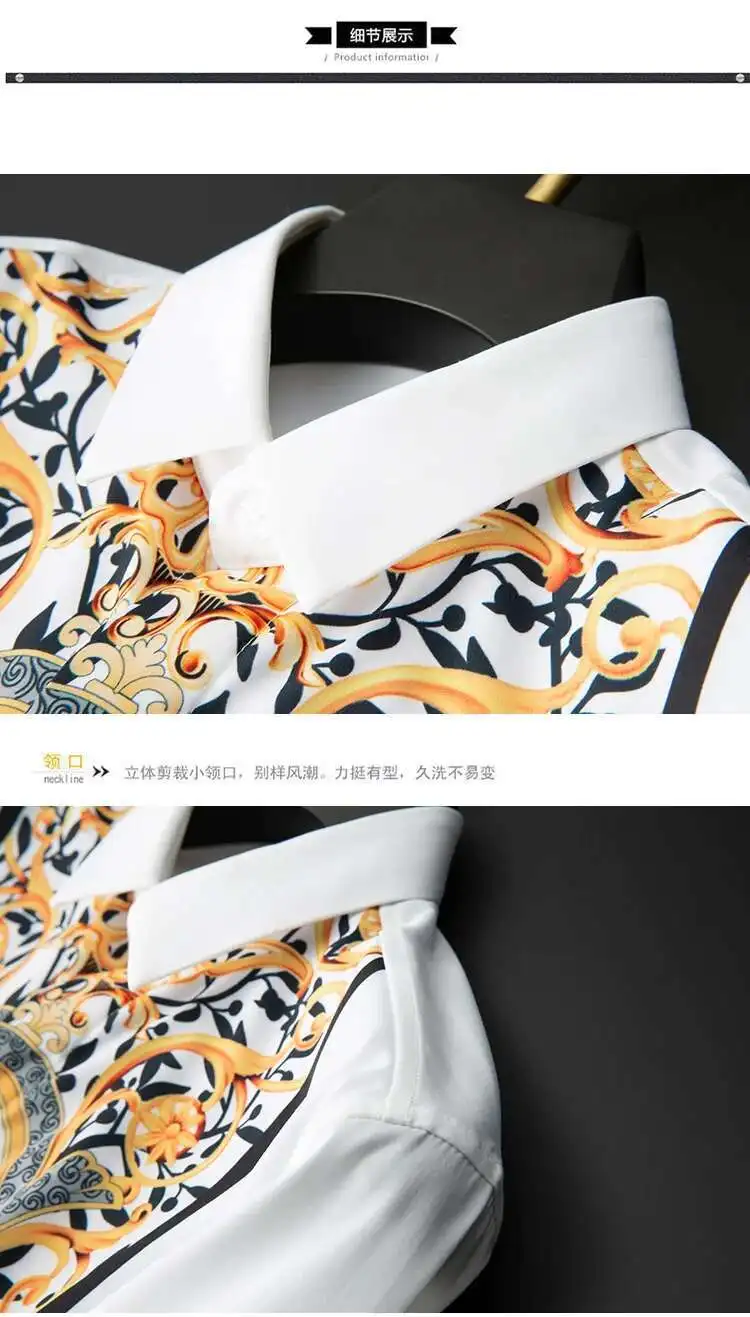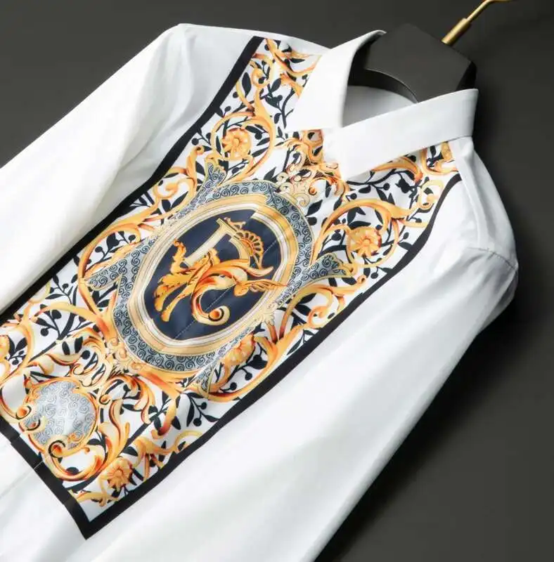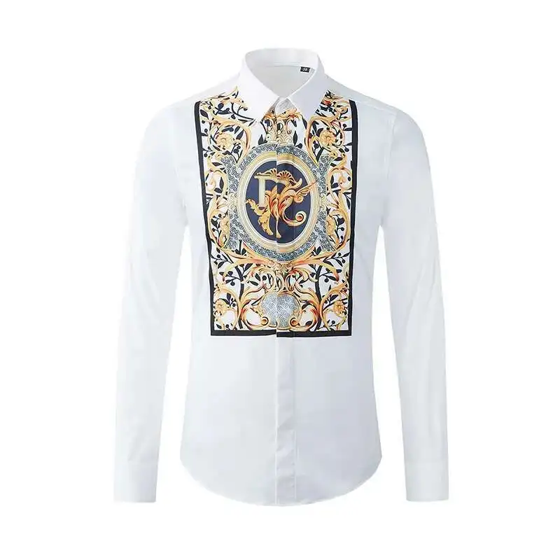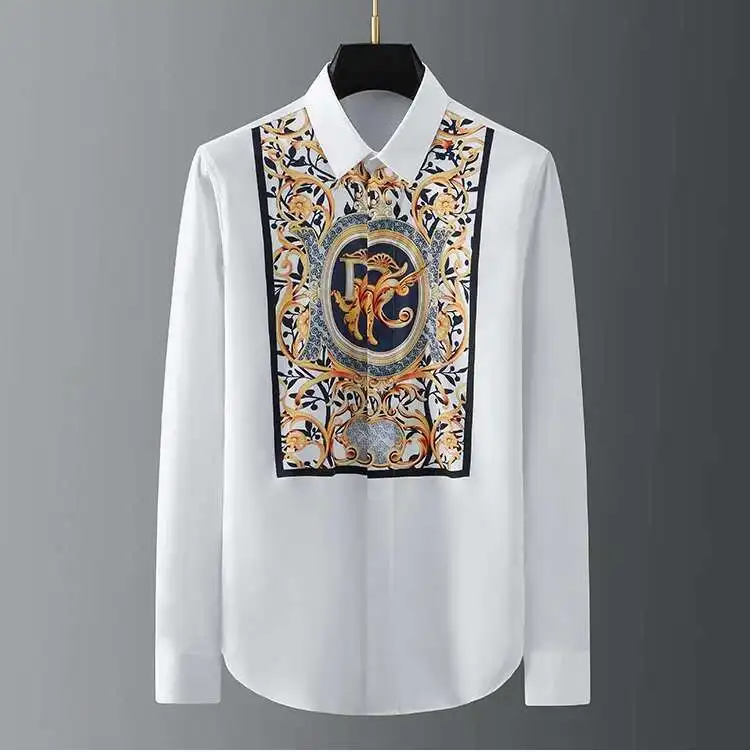 Luxury European Style Palace Print Men Shirt Long Sleeve Slim Men Shirt Wedding Groom Party Dinner Social Club Formal Dress Men