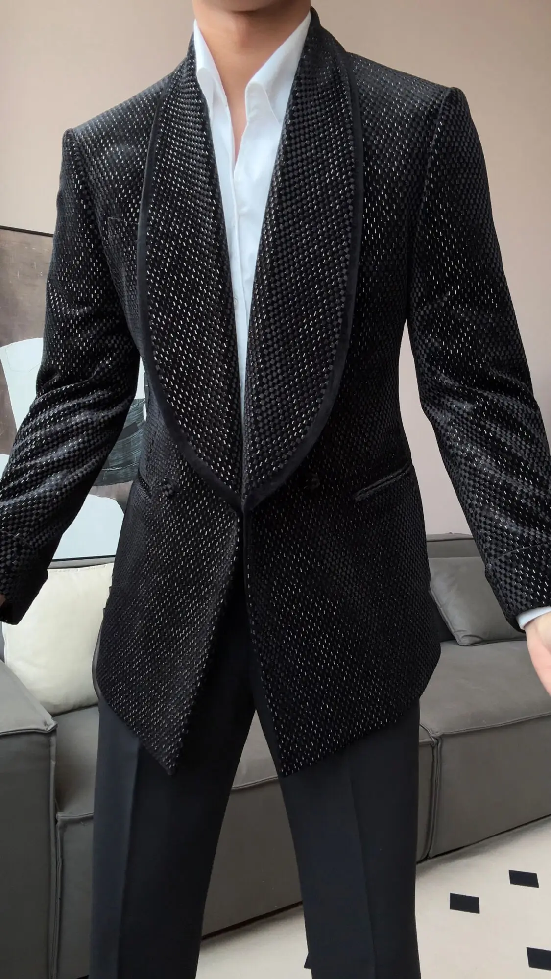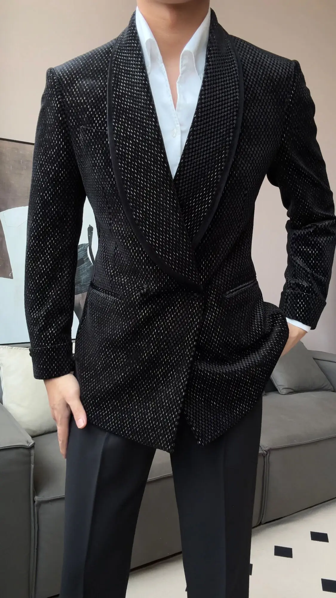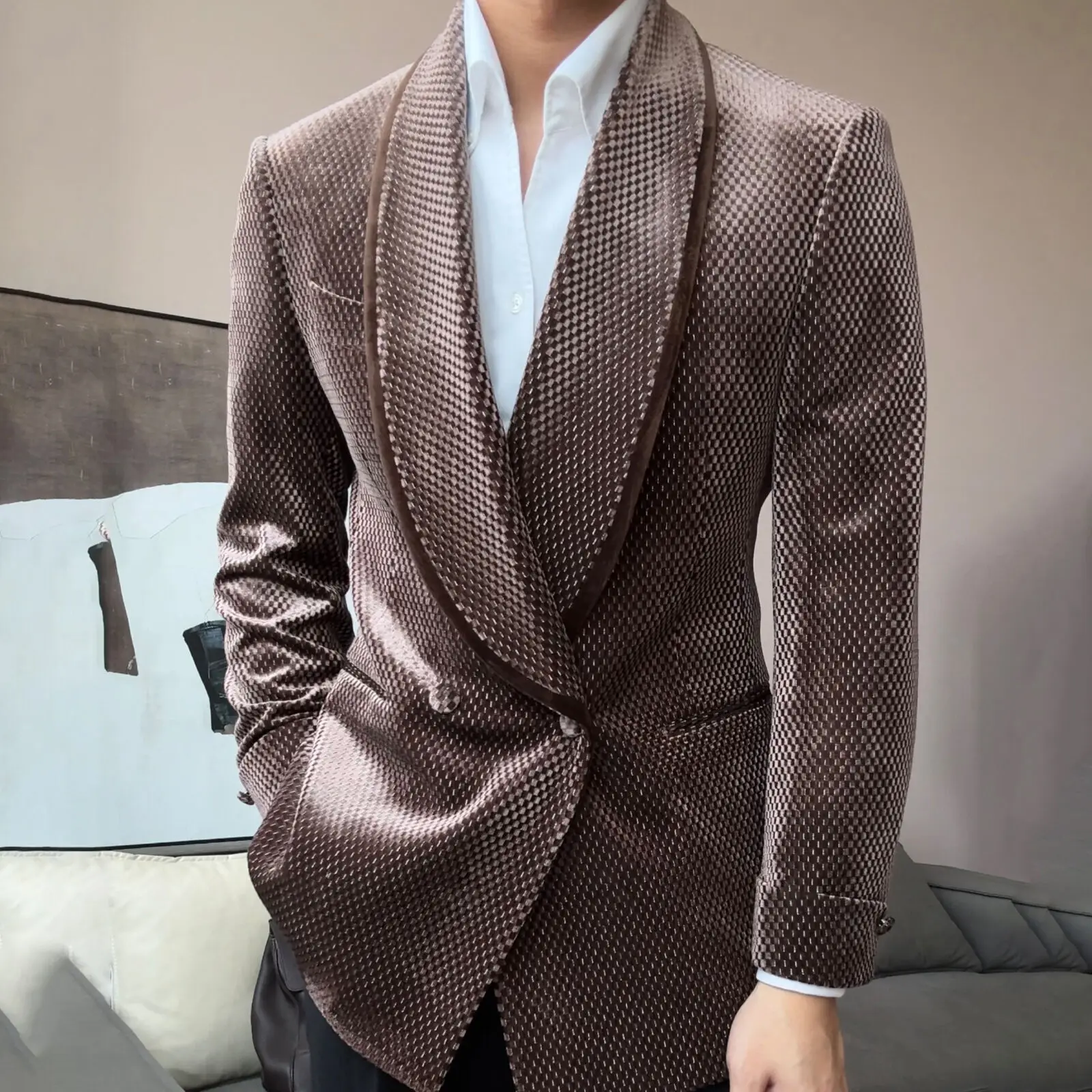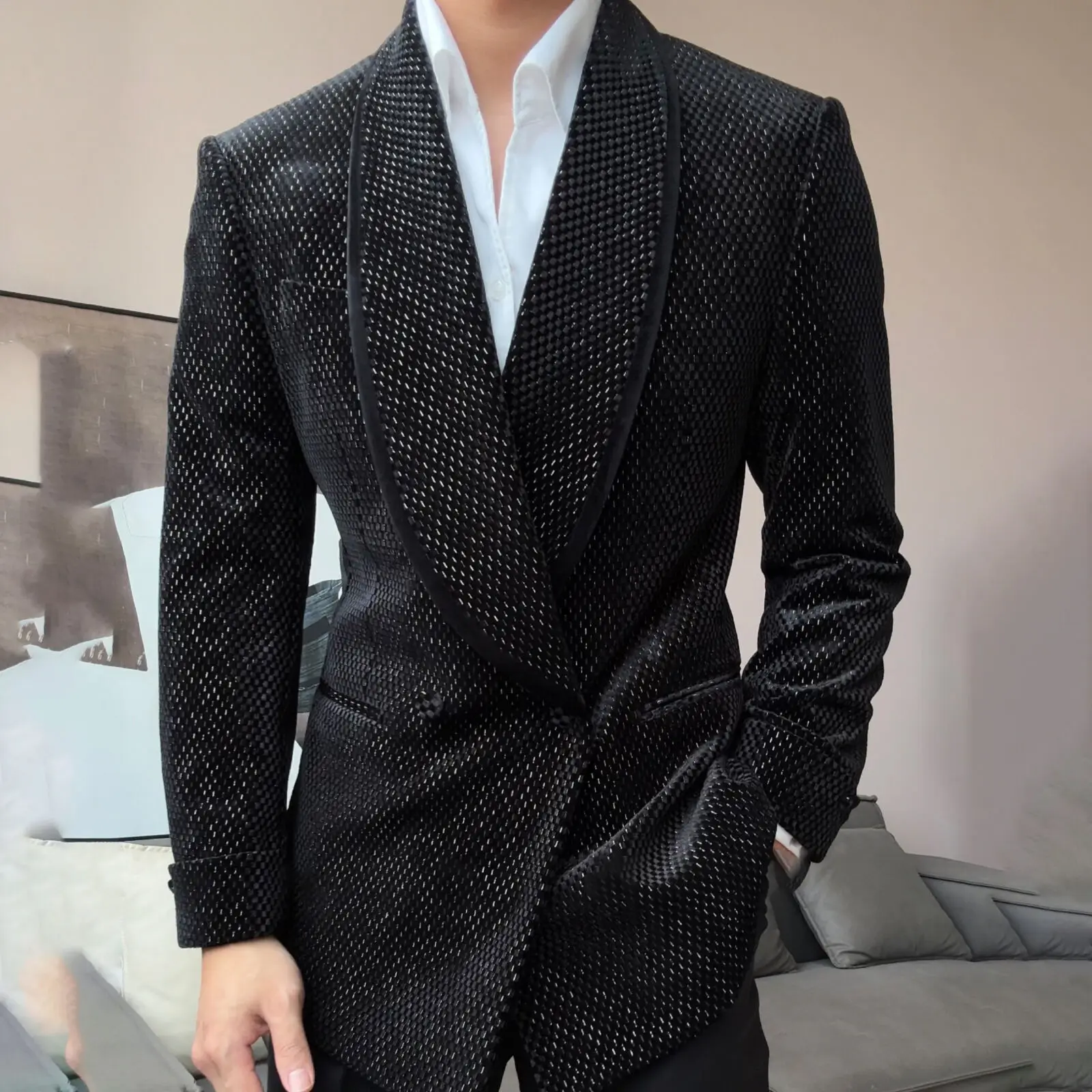 New Luxury Fruit Collar Velvet Mens Stylish Blazer Masculino Slim Fit Chaqueta Hombre European Style Formal Male Blazer Suit