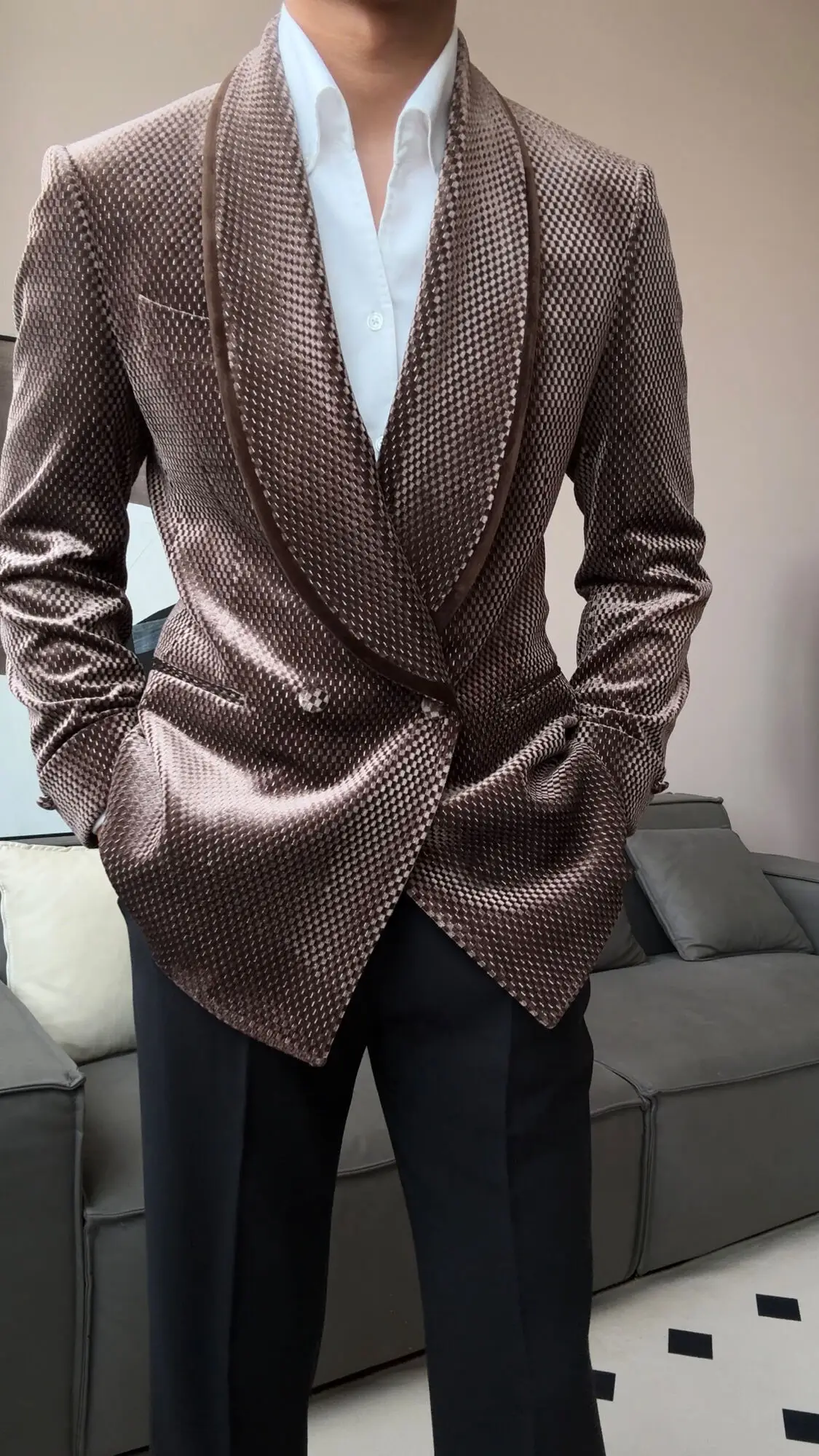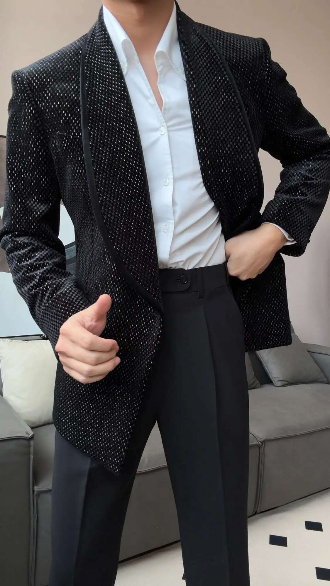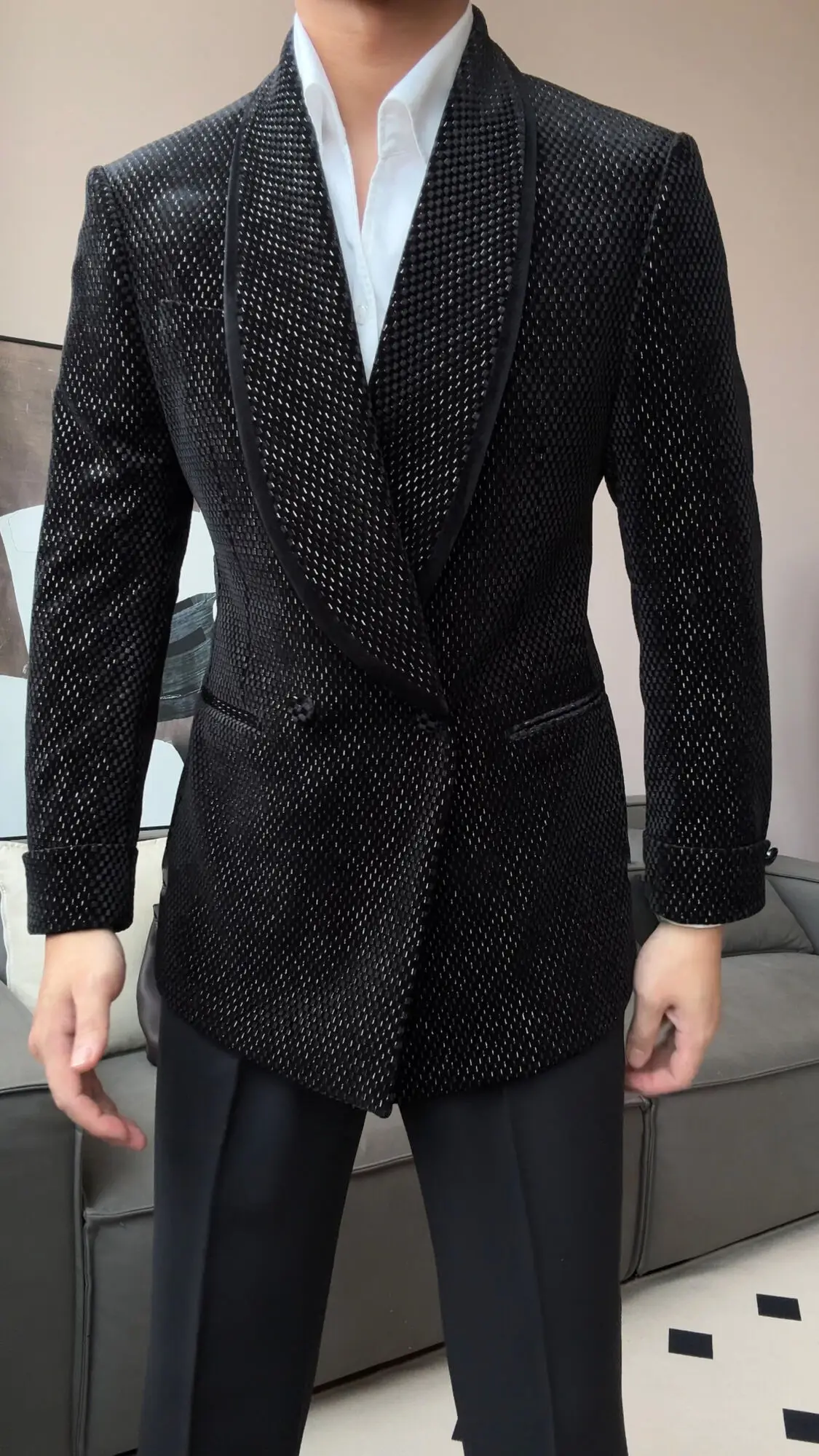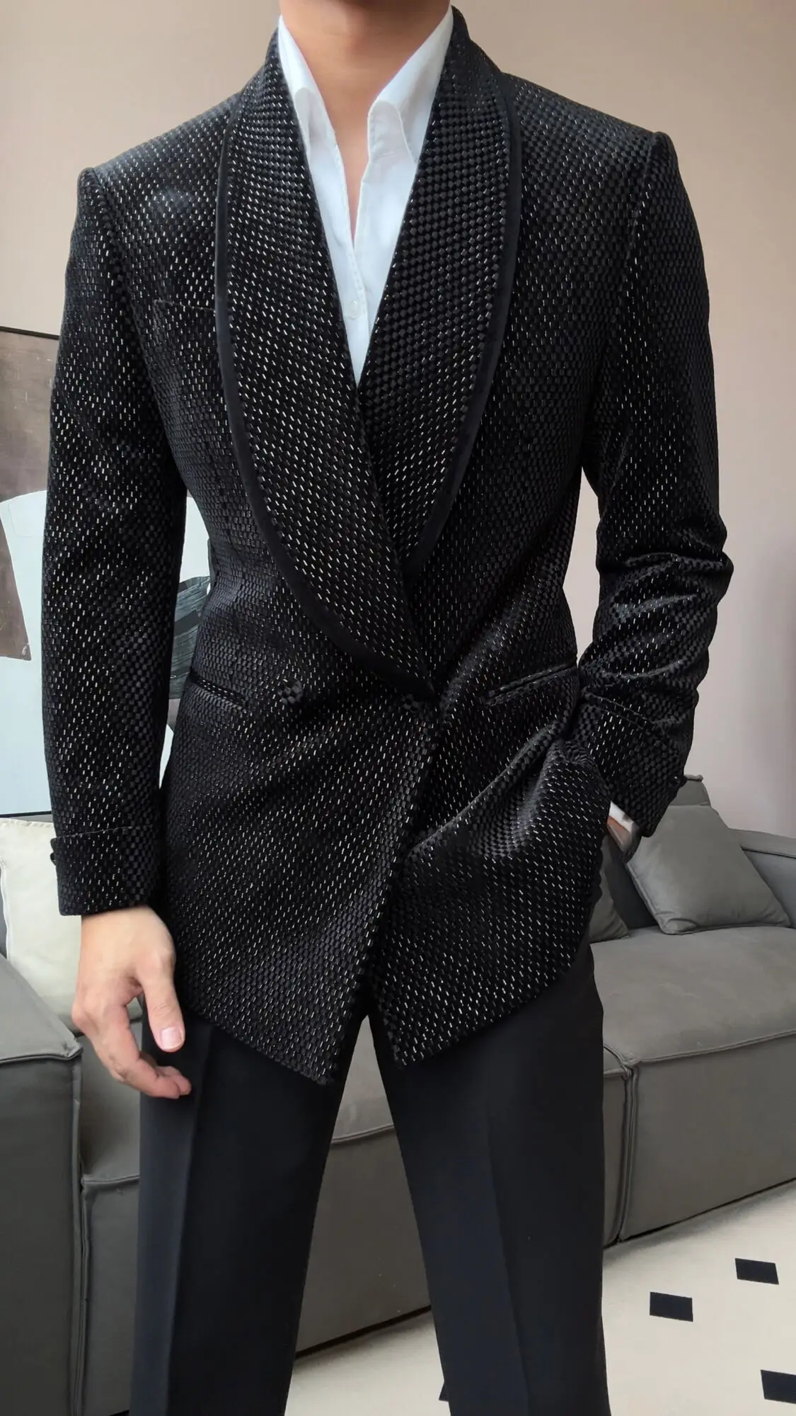 New Luxury Fruit Collar Velvet Mens Stylish Blazer Masculino Slim Fit Chaqueta Hombre European Style Formal Male Blazer Suit