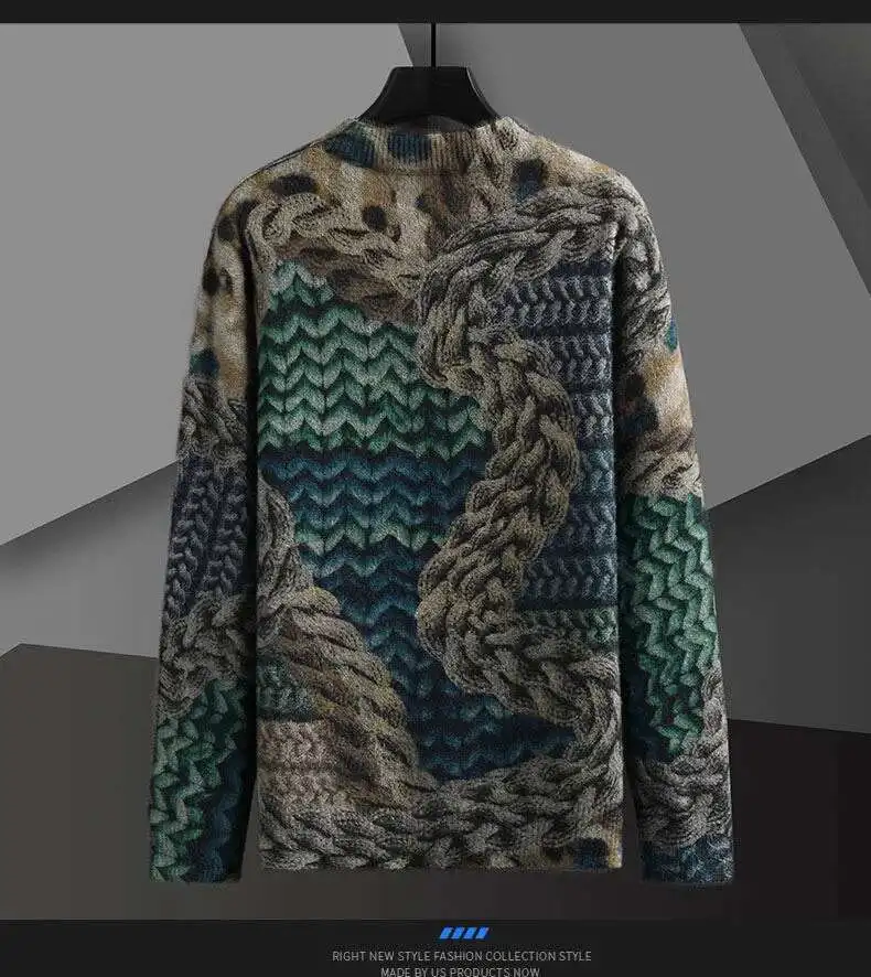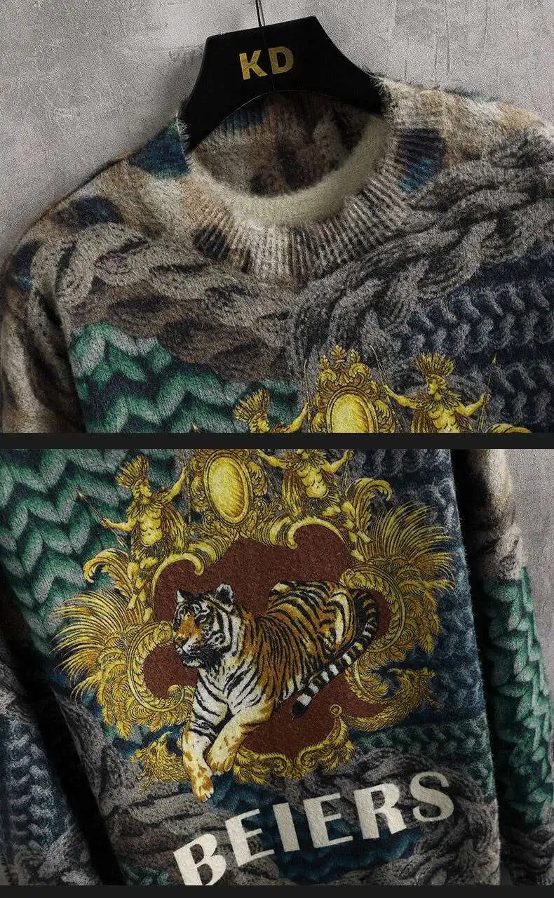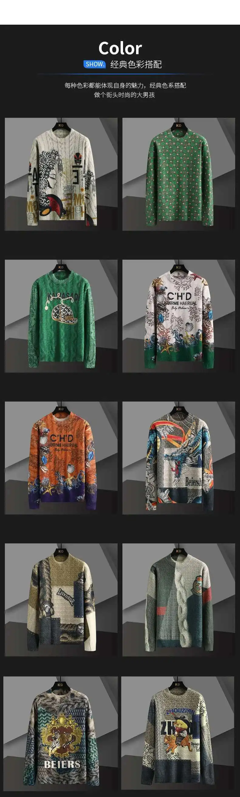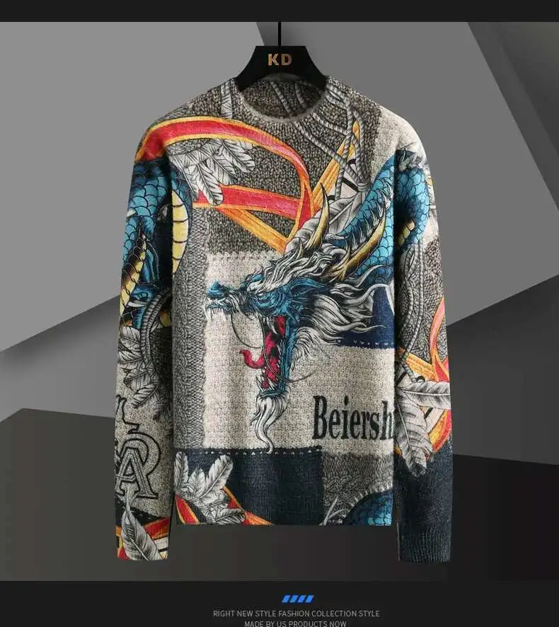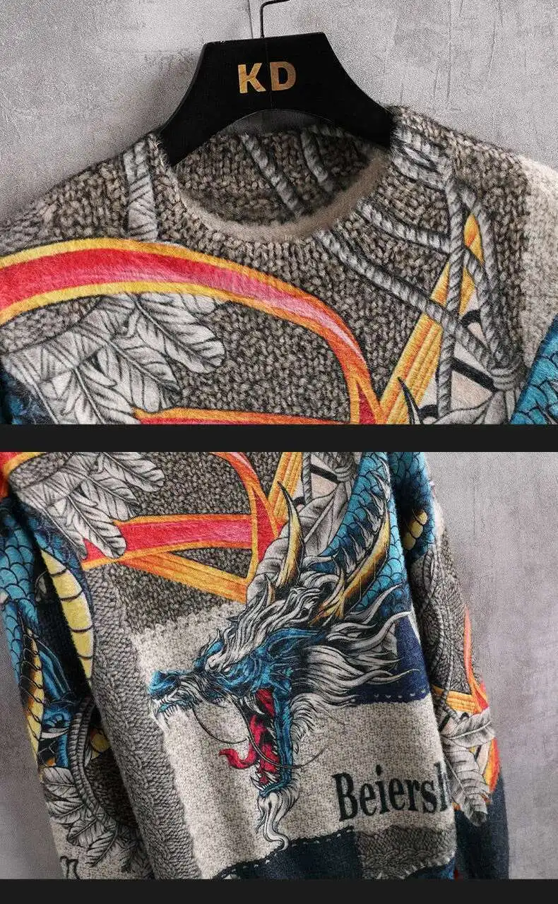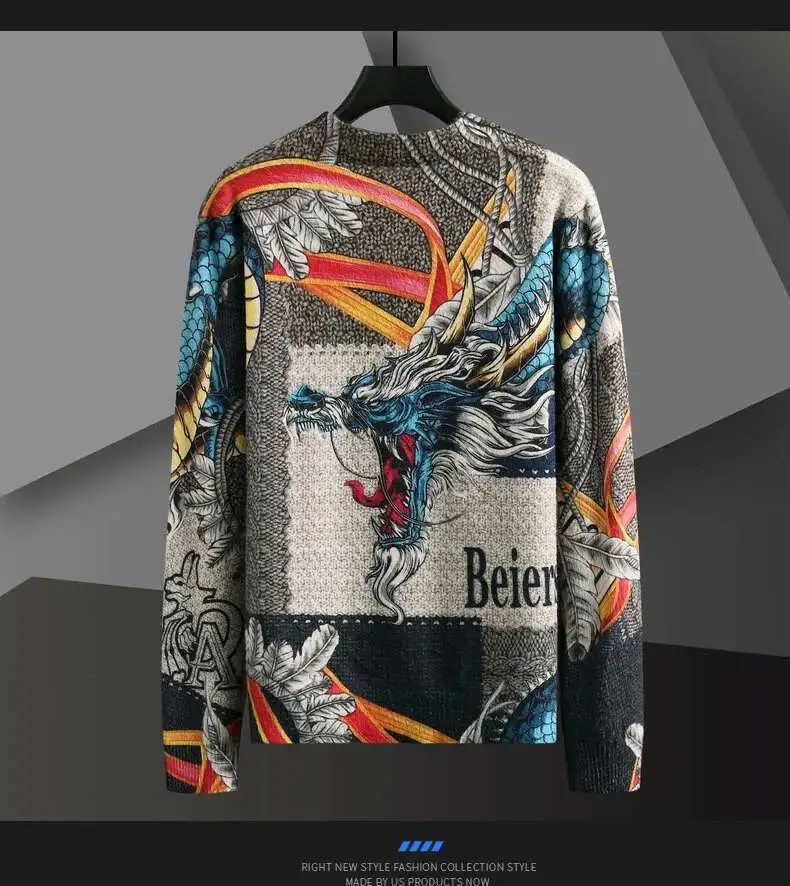 Personalized Digital Three Colorful Animal Dragon Print Dimensional Printing Pattern Knitted Sweater Men Warm Keeping Pullover