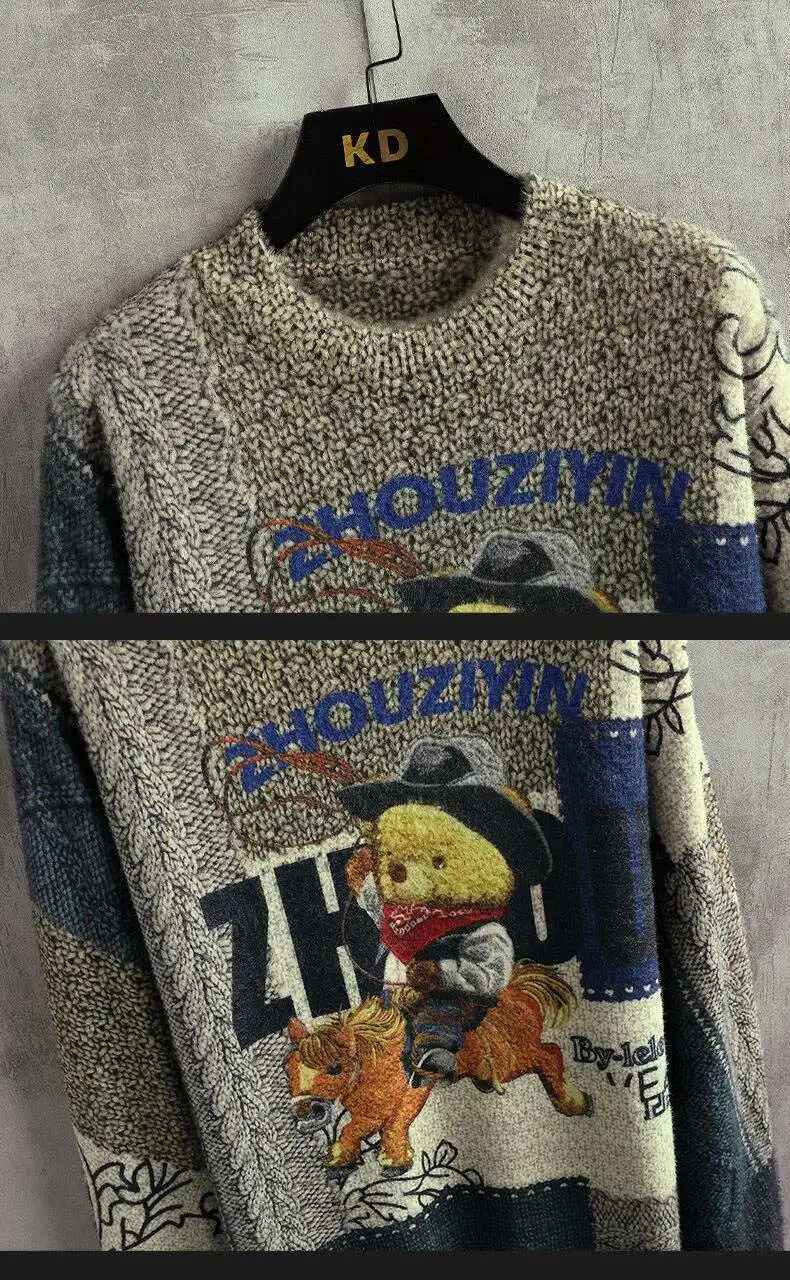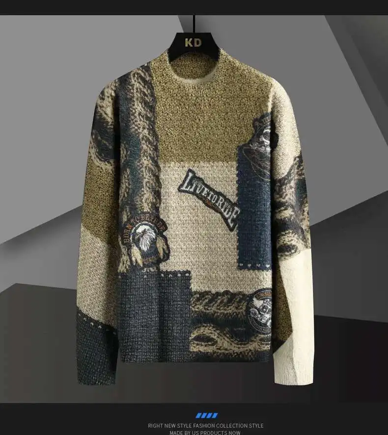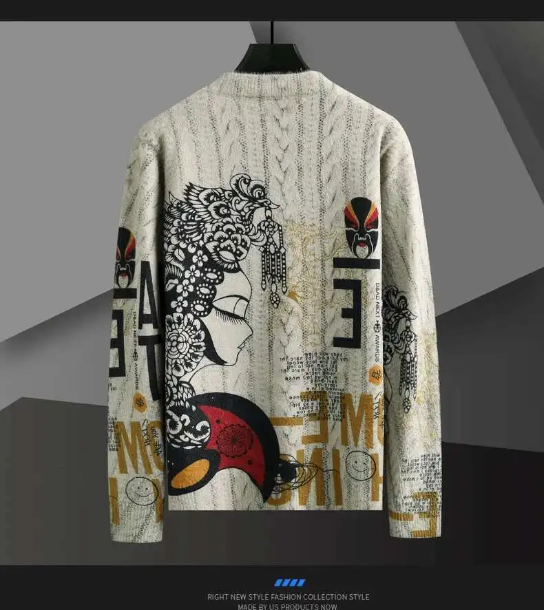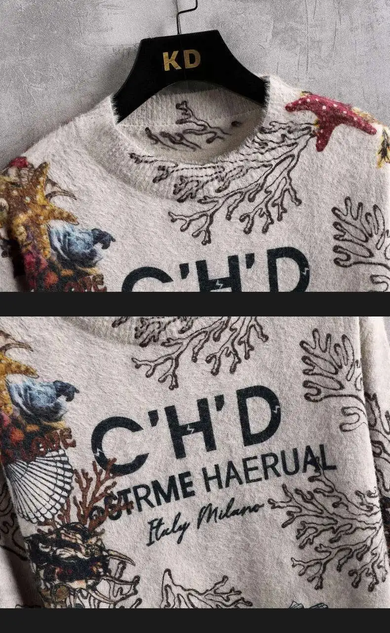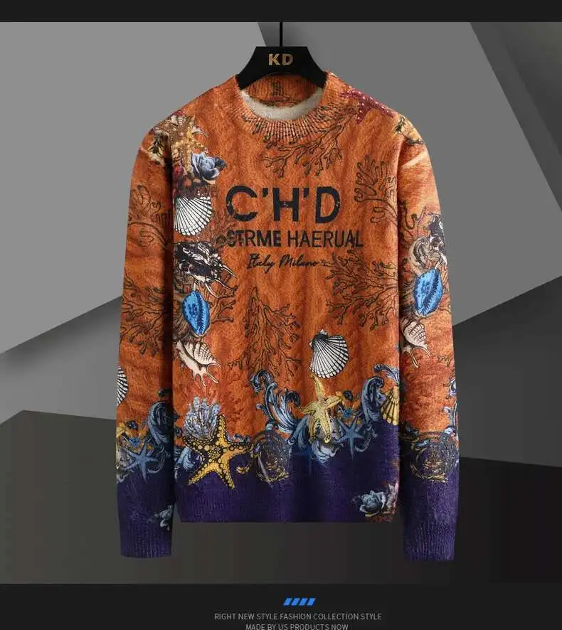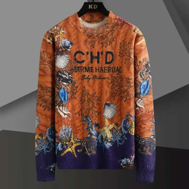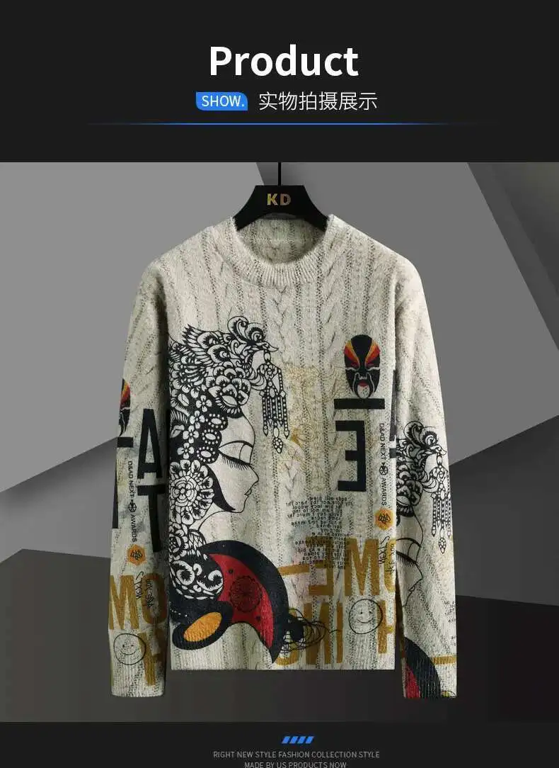 Personalized Digital Three Colorful Animal Dragon Print Dimensional Printing Pattern Knitted Sweater Men Warm Keeping Pullover