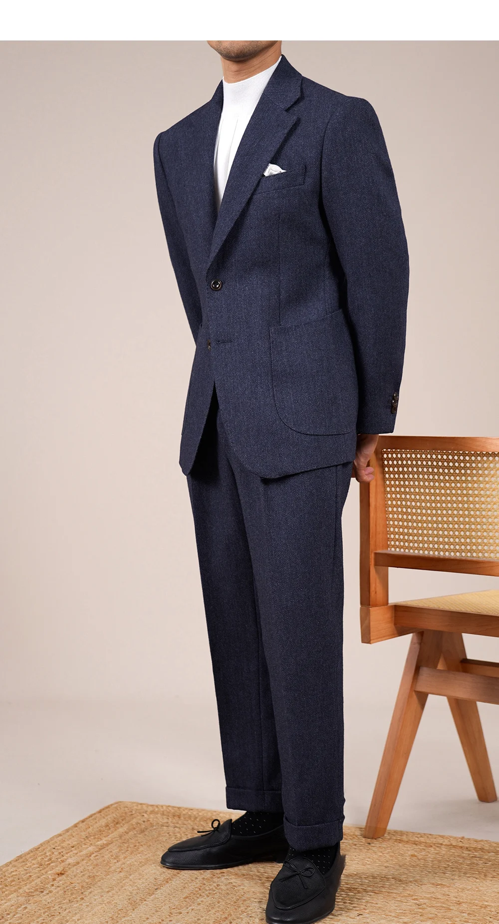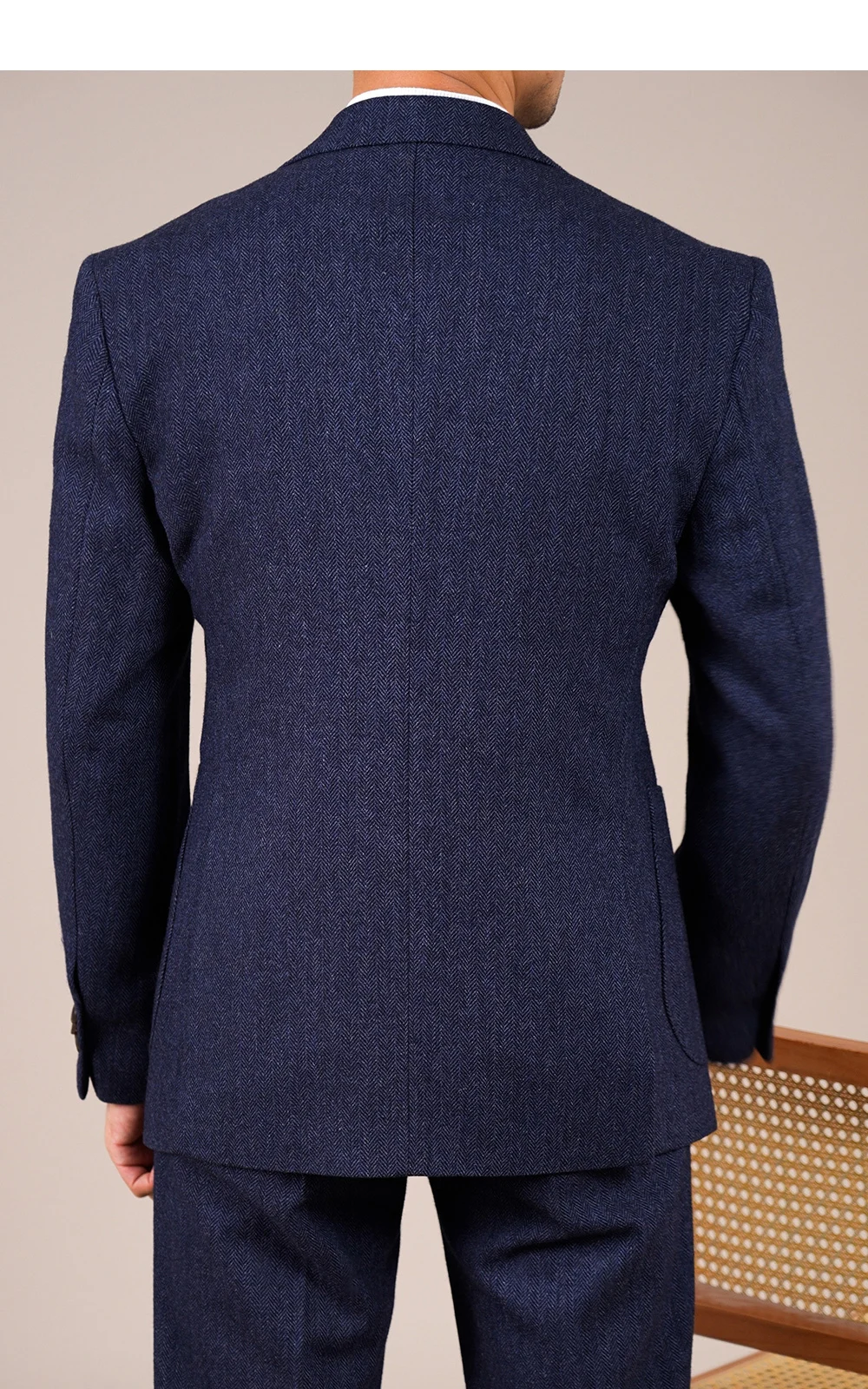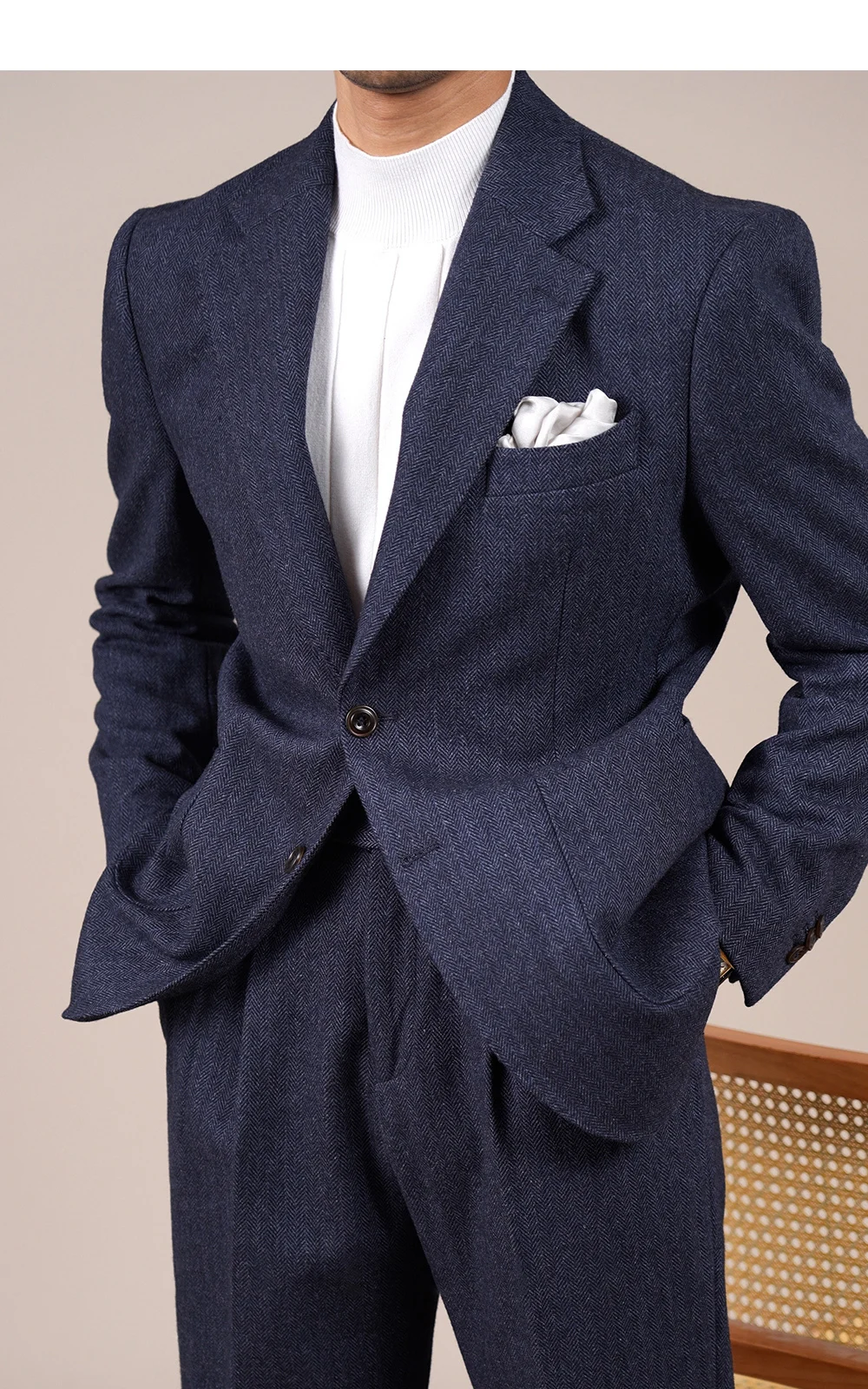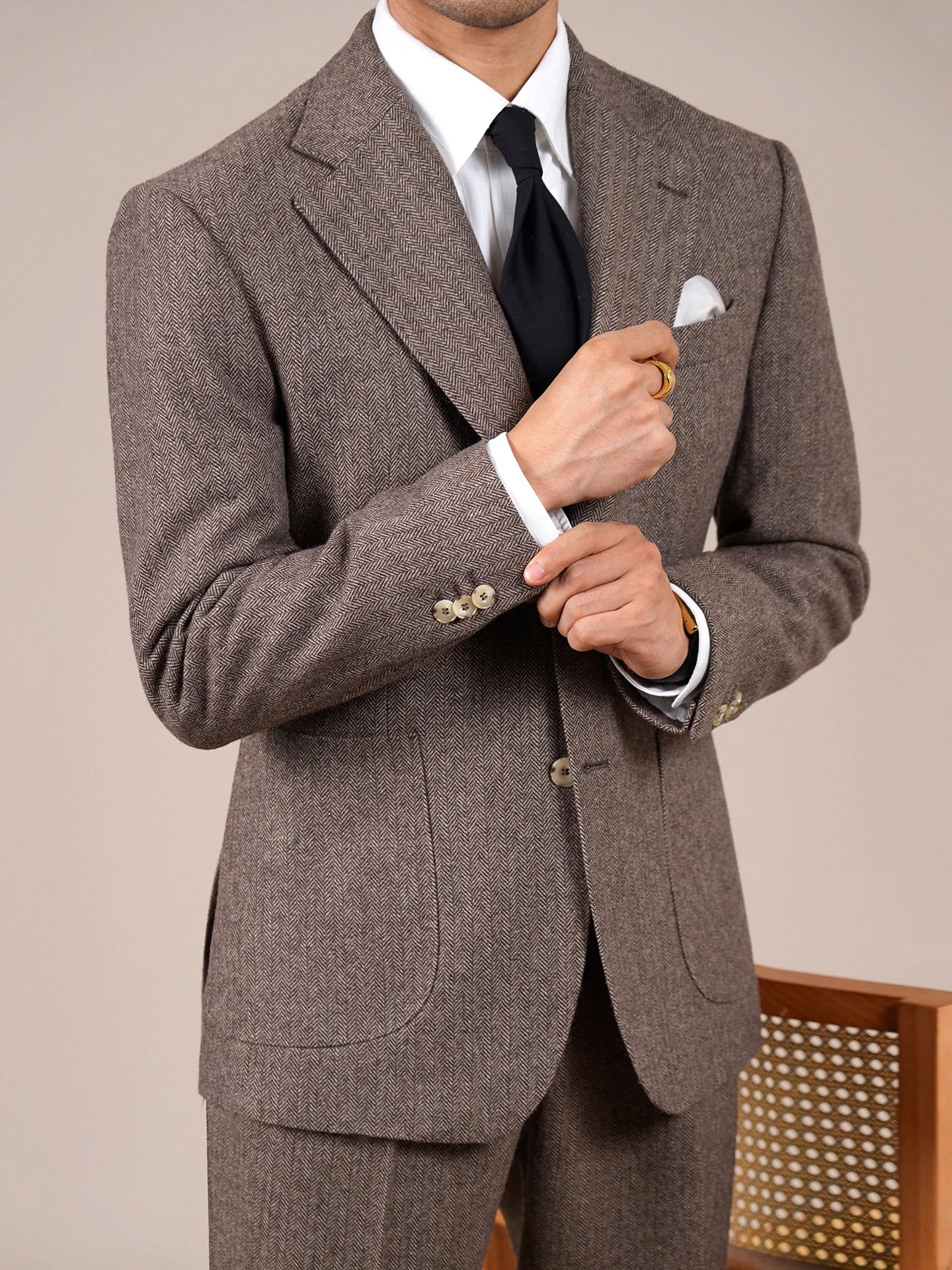 Wool Blend Suit Set For Men Fall Winter Style Notched Lapel Commuter Herringbone Pattern Casual Business Blazer Men Tuxedo Suit