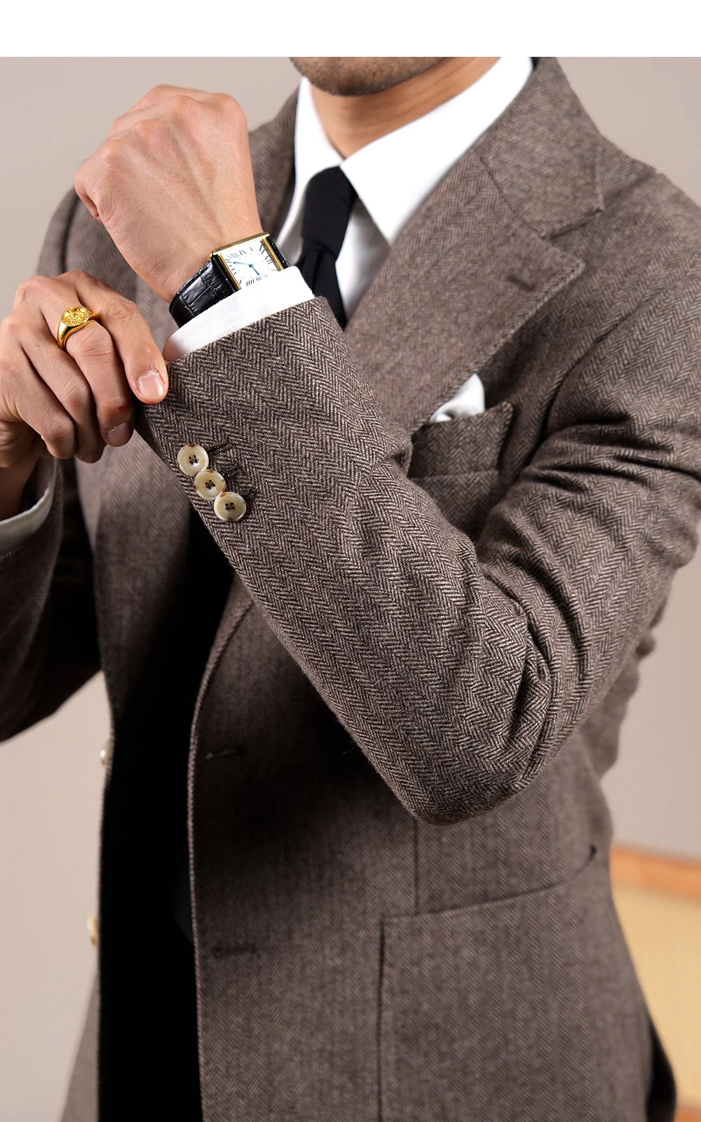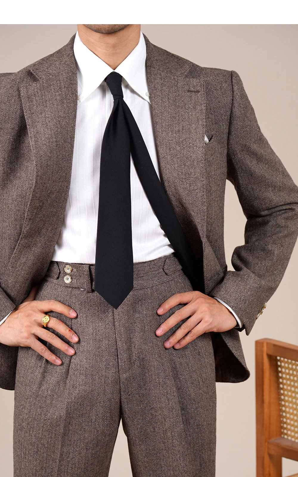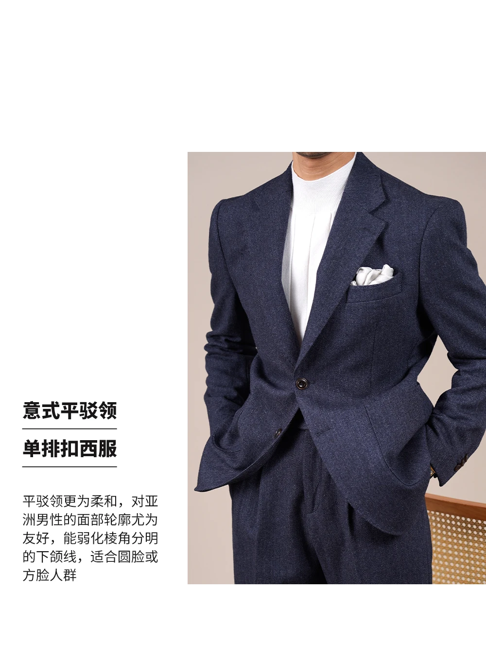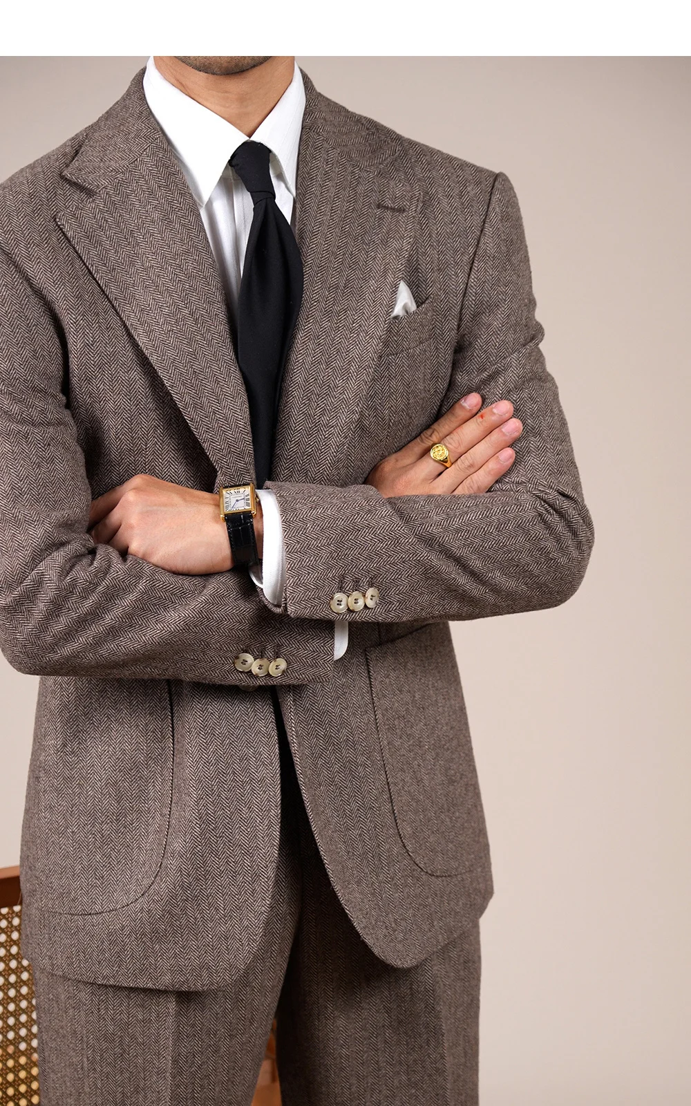 Wool Blend Suit Set For Men Fall Winter Style Notched Lapel Commuter Herringbone Pattern Casual Business Blazer Men Tuxedo Suit